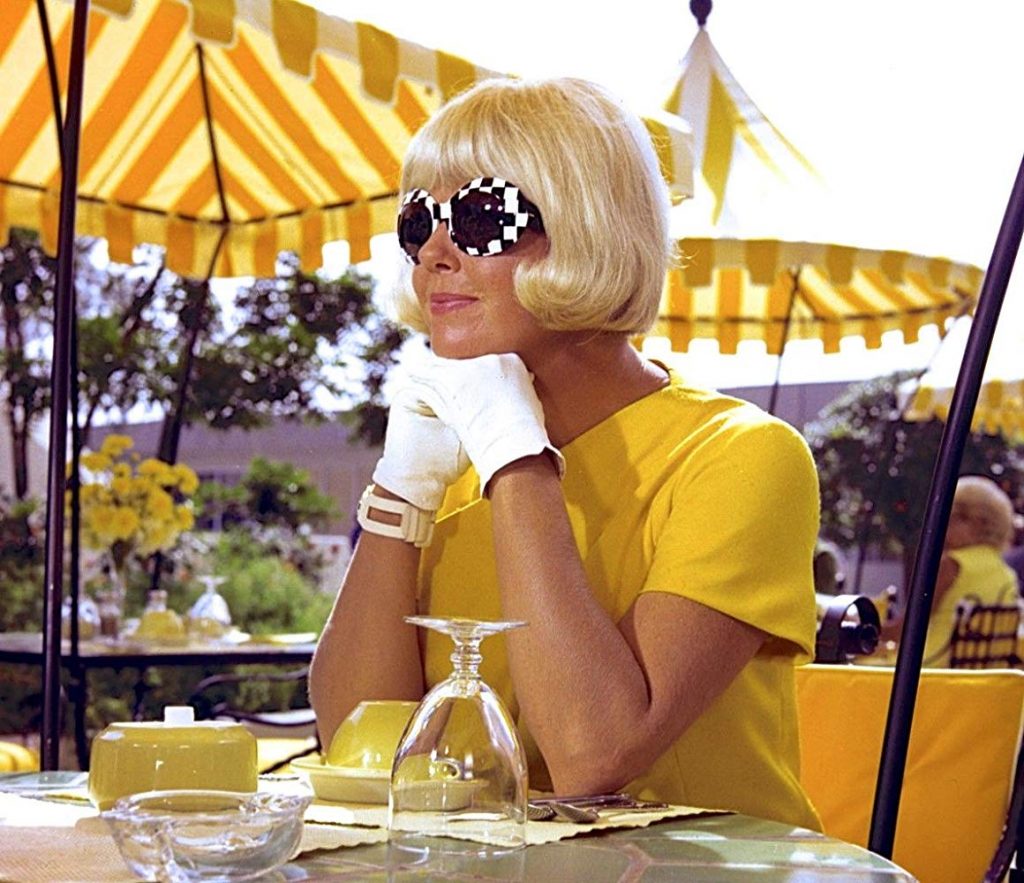 Για το ρόλο της ως κατάσκοπος στην ταινία Caprice η Ντέι είχε φορέσει μια σειρά από χρωματιστά σύνολα μεταξύ των οποίων και αυτό το έντονο κίτρινο φόρεμα το οποίο είχε συνδυάσει με λευκά γάντια και μεγάλα ασπρόμαυρα γυαλιά ηλίου.