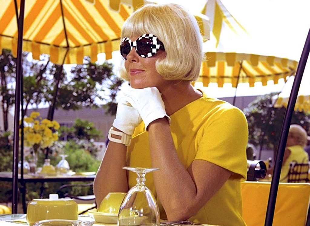 Για το ρόλο της ως κατάσκοπος στην ταινία Caprice η Ντέι είχε φορέσει μια σειρά από χρωματιστά σύνολα μεταξύ των οποίων και αυτό το έντονο κίτρινο φόρεμα το οποίο είχε συνδυάσει με λευκά γάντια και μεγάλα ασπρόμαυρα γυαλιά ηλίου.