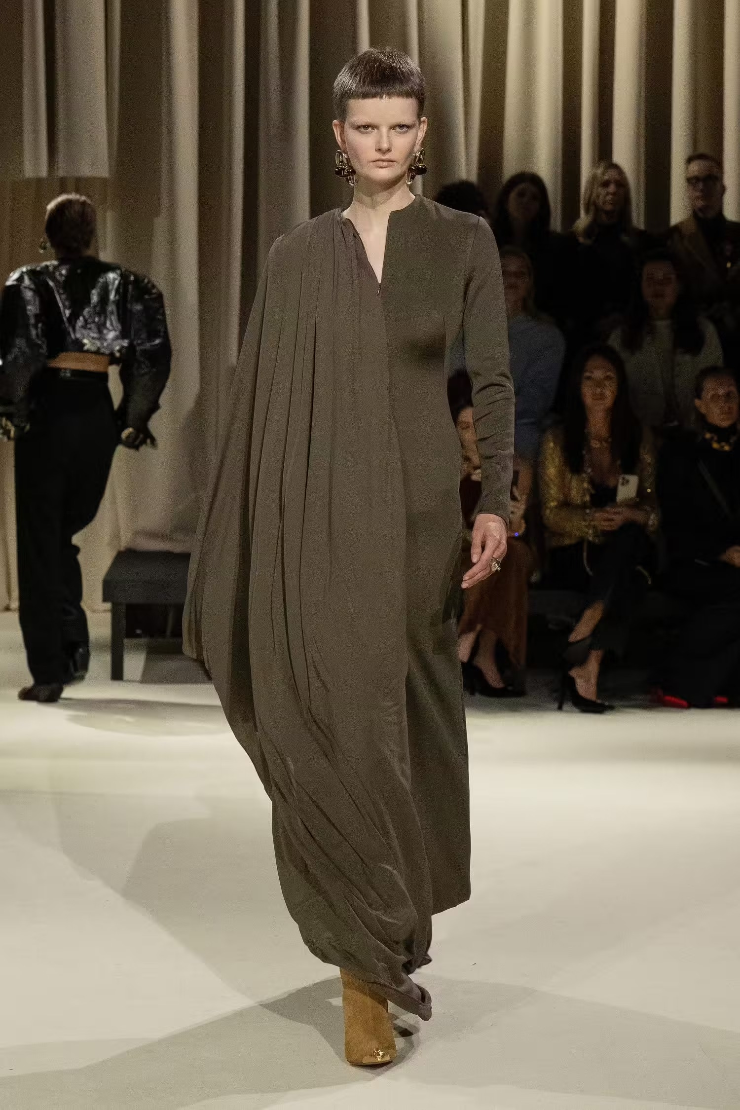 Την περασμένη σεζόν, το supermodel Shalom Harlow άνοιξε το show του οίκου Schiaparelli για την συλλογή SS2024 με ένα μίνι φόρεμα με τονισμένους ώμους και στενή μέση. Χθες, στην εβδομάδα μόδας του Παρισιού η Mona Tougaard με ένα tweed ανδρικό κοστούμι χωρίς πουκάμισο από μέσα και με ψηλόμεσο φαρδύ παντελόνι πραγματοποίησε την πρώτη εμφάνιση στην πασαρέλα για την φθινοπωρινή/χειμερινή συλλογή «Esprit De Schiap» 2024-2025 του οίκου. Το ύφος, τα κοψίματα και το design των ρούχων έμοιαζαν ολοκαίνουργια. Πιο χαλαρά look συνδυασμένα με φαρδιά παντελόνια κουστουμιού, oversized σακάκια και μονόχρωμα μάξι φορέματα σε loose γραμμές είχαν πρωταγωνιστικό ρόλο.