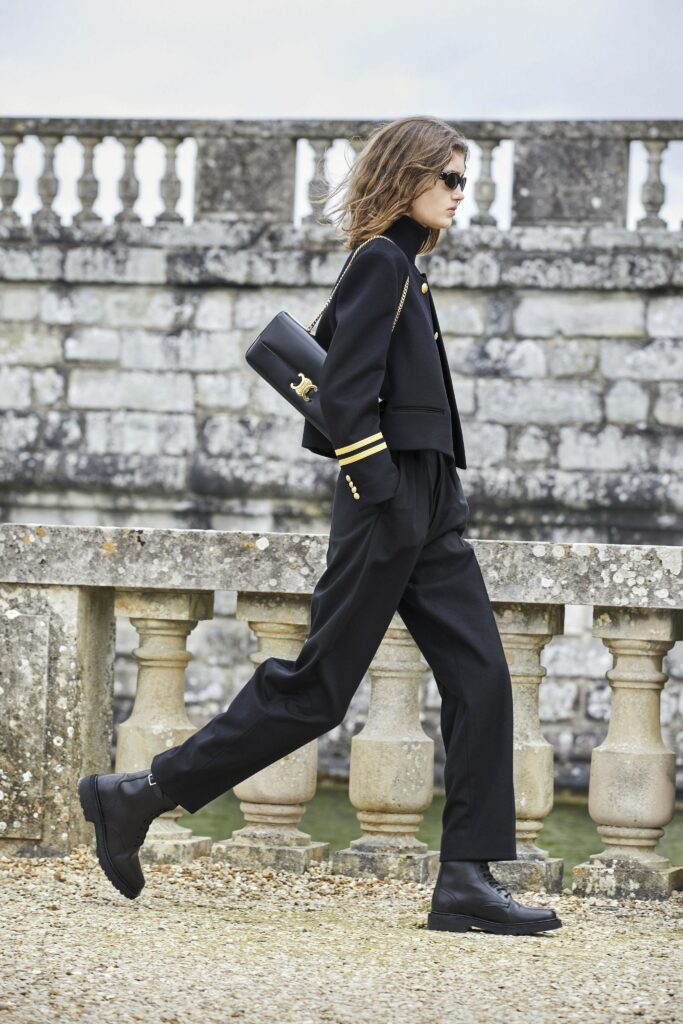Υπήρξε όμως και μια ευπρόσδεκτη επιστροφή στην κομψή ραπτική με tailored σακάκια, πουκάμισα pussy-bow μπλούζες και δερμάτινες culottes. Υπήρχε πολύ τζιν, αλλά στις πιο κομψές εκδοχές του καθώς και φούτερ και πλεκτά συνδυασμένα όμως με βραδινές τσάντες και μίνι φορέματα με πούλιες. Όσο για τα παπούτσια, δεν υπήρχαν τακούνια στον ορίζοντα. Αντ ‘αυτού, υπήρχαν μπότες πεζοπορίας και αθλητικά. Μπορεί να αρχίσουμε να κάνουμε ξανά πράγματα, αλλά ο Slimane ξέρει ότι πλέον δεν έχουμε καμία ανοχή για πόνο στα πόδια.