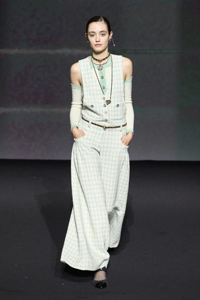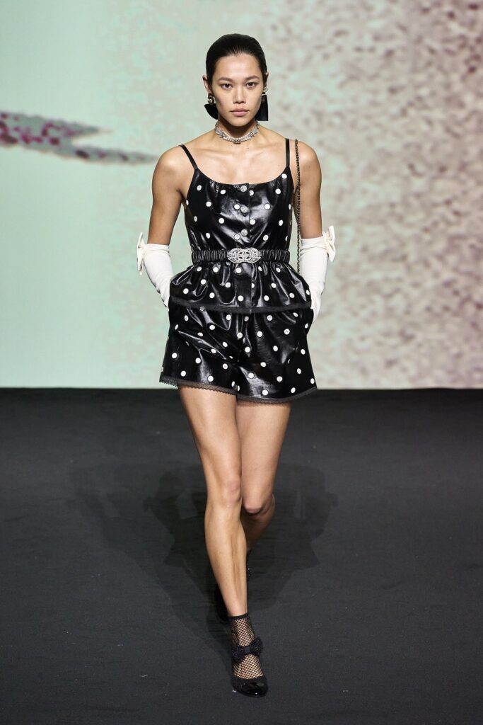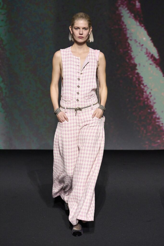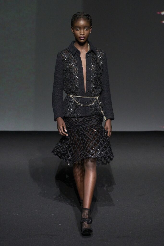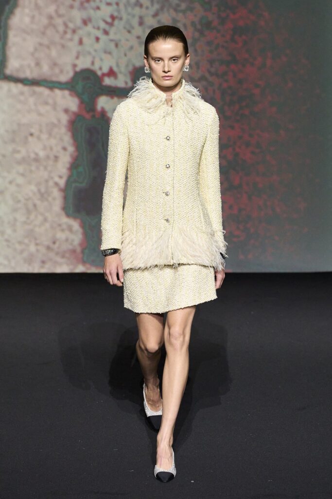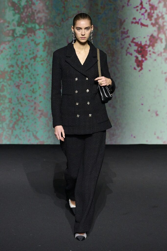 Ένα άλλο από τα μοτίβα που υπάρχουν στη συλλογή είναι το πουά τυπωμένο σε ασπρόμαυρα total λουκ, τόσο σε ασορτί σύνολα όσο και σε μεμονωμένα κομμάτια. Το μαύρο δέρμα δεν λείπει από τη νέα συλλογή κι έρχεται με λευκά πουά, τόσο σε ολόσωμες φόρμες όσο και σε δερμάτινα τζάκετ. Το τουίντ ξεπερνά το κλασικό σετ του σακακιού και του παντελονιού ή της φούστας. Αυτή την άνοιξη, η Chanel ποντάρει σε ασορτί μαύρα σύνολα φορεμάτων και παλτών. Ίσως το πιο αναζωογονητικό στοίχημα είναι ένα είδος σετ παντελονιού και γιλέκου με χαλαρά μοτίβα που συνδυάζονται με με πλεκτά, είτε είναι φούτερ είτε τοπ με πεσμένους ώμους.