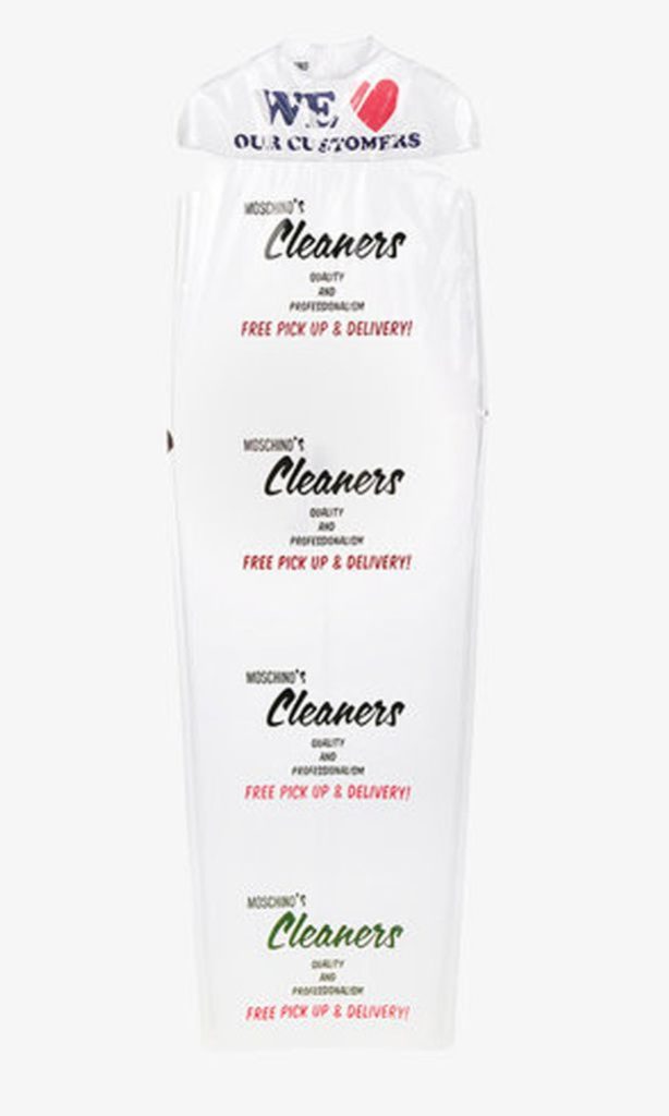 Το fashion item το οποίο περιγράφεται ως διαφανές cape-dress στο website του Browns’ είναι κατασκευασμένο από πολυεστερική επαναχρησιμοποιημένη πλαστική σακούλα και έχει επάνω του τυπωμένη τη φράση «Δωρεάν παραλαβή και παράδοση» με κόκκινα γράμματα. Και όχι, το slip-dress που το μοντέλο φορούσε από μέσα στο runway, δεν συμπεριλαμβάνεται.