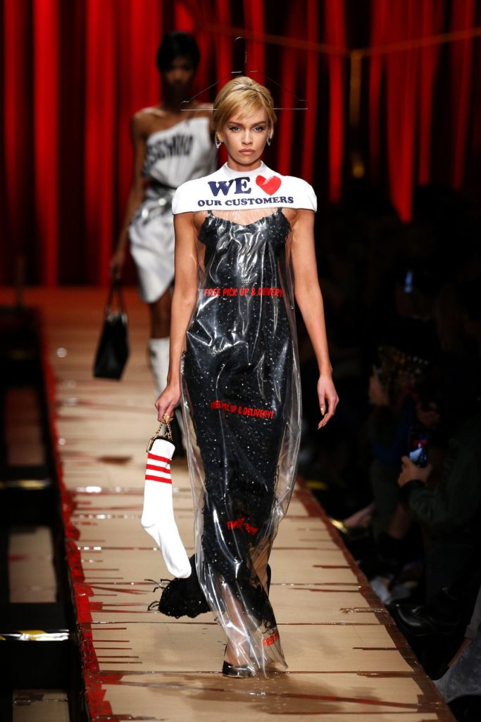 Στην εβδομάδα μόδας AW17 του Μιλάνου τον Φεβρουάριο, ο καλλιτεχνικός διευθυντής του οίκου -Jeremy Scott σχεδίασε μια συλλογή εμπνευσμένη από τα σκουπίδια, στέλνοντας μοντέλα στο runway τυλιγμένα σε bubble wraps, χάρτινες κούτες και πλαστικές σακούλες.