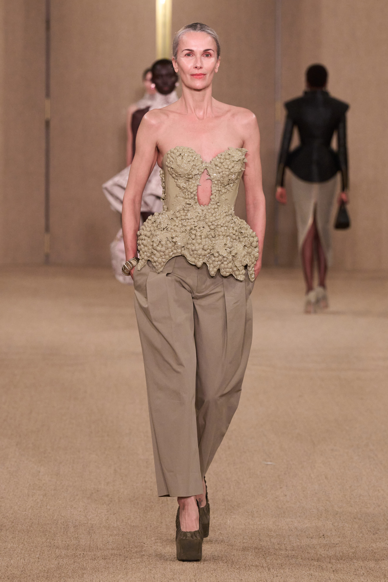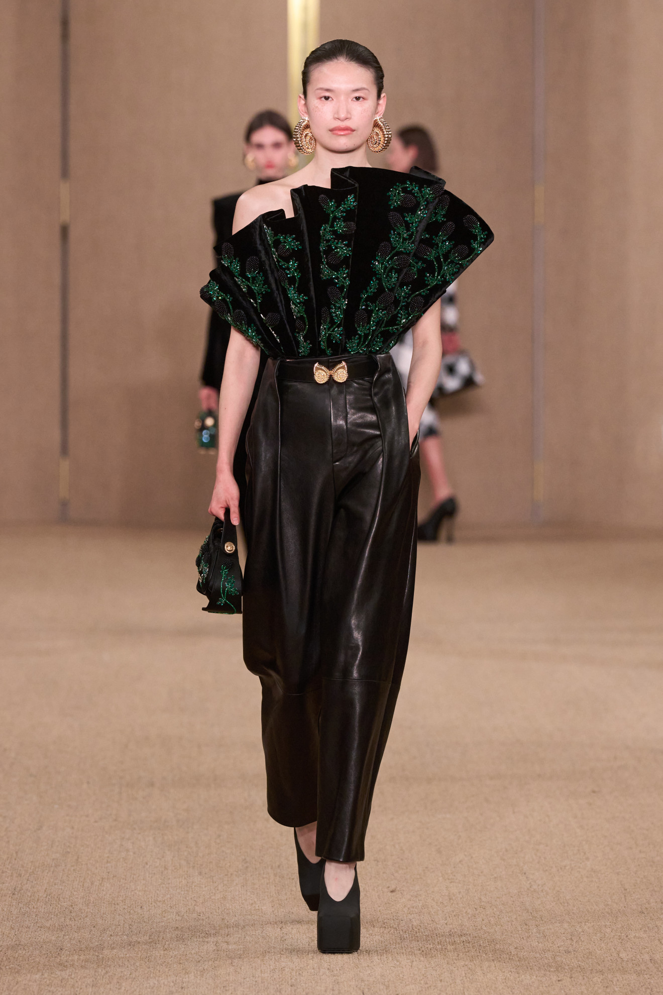 Επομένως, η ιδέα του Rousteing για το «offhand chic» δεν είναι άλλο από ένα χαλαρό χακί παντελόνι συνδυασμένο με ένα δερμάτινο bustier ή με ένα λαμπερό τοπ το οποίο ο γάλλος σχεδιαστής το έκανε να μοιάζει με χειροποίητο χρωματιστό γυαλί Murano.