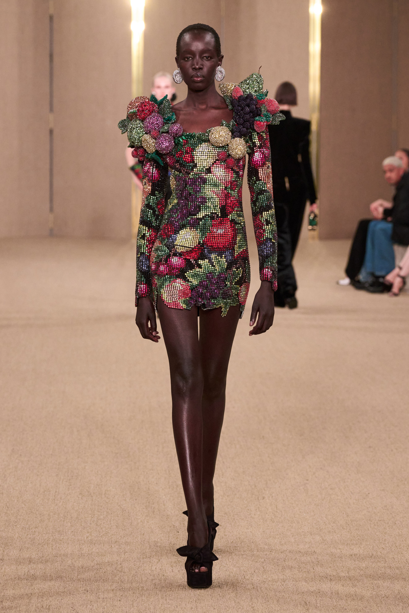 Εξερευνώντας τα αρχεία του θρυλικού Pierre Balmain-ιδρυτή του οίκου Balmain- ο Olivier μεταπήδησε από τα φλοράλ μοτίβα στα φρούτα της άνοιξης, γοητευμένος από τα διακοσμητικά που λάνσαρε ο ιδρυτής του οίκου σε σχήμα μήλου, ξηρών καρπών και φράουλας.