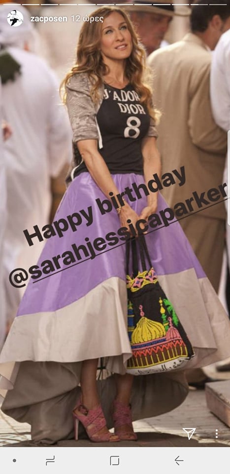 Ο σχεδιαστής Jac Posen, της ευχήθηκε ανεβάζοντας στο story του ένα στιγμιότυπο από την δεύτερη ταινία του Sex & the City, στην οποία η Carrie Bradshaw φόρεσε την υπέροχη μοβ φούστα με την υπογραφή του για να πάει στο παζάρι του Abu Dhabi, εκεί, όπου συνάντησε τυχαία τον πρώην της Aidan.