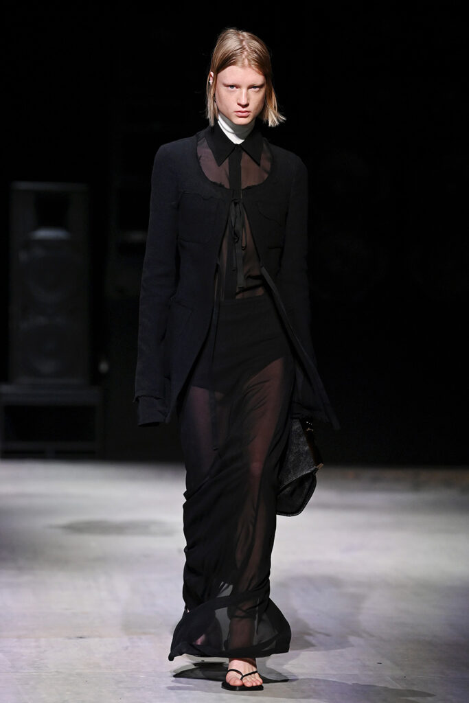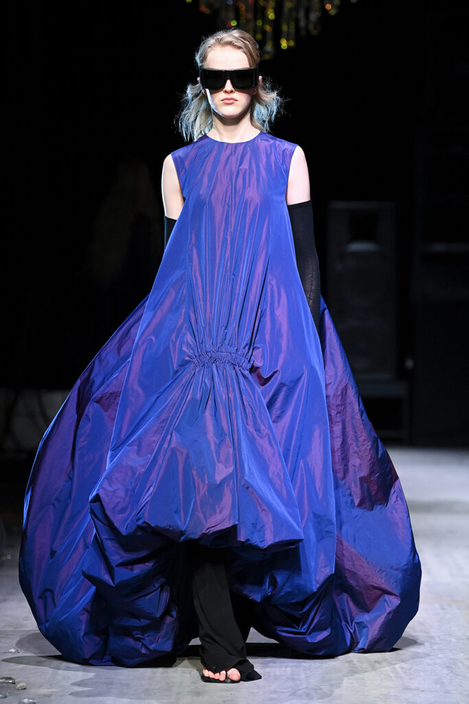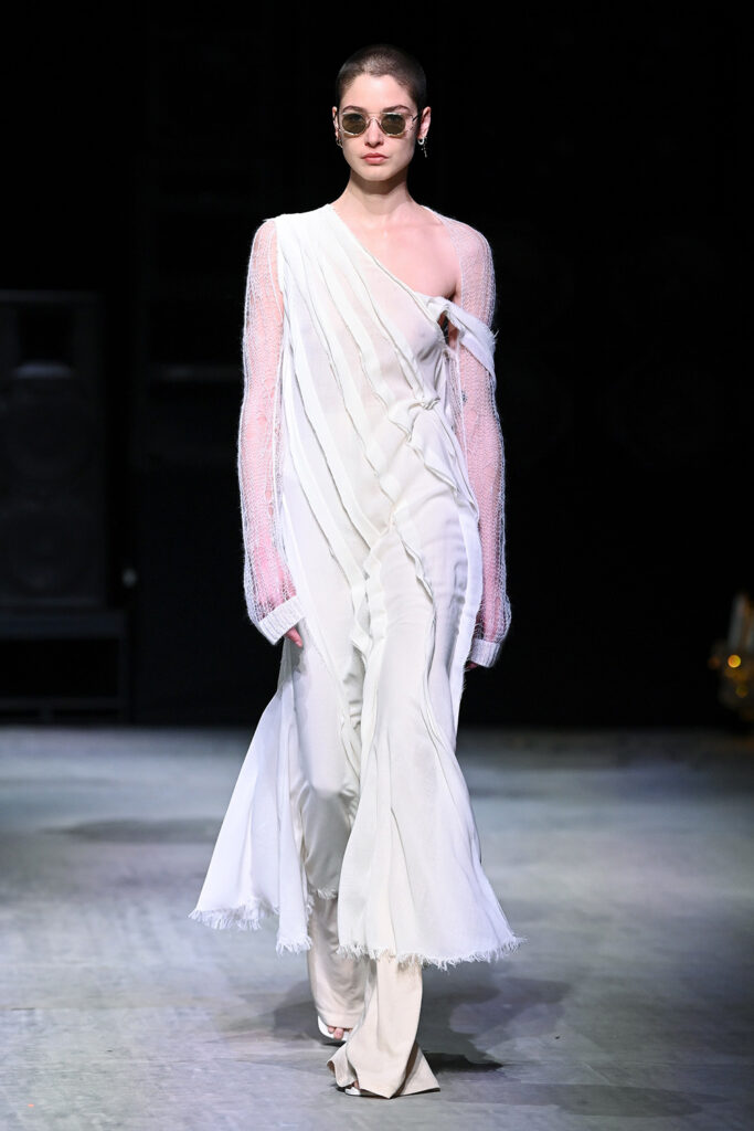 Τα κυματιστά σχέδια των Roaring Twenties αποτυπώνονται σε σιλουέτες που μεταμορφώνουν το σώμα σε ανθρώπινη μορφή τέχνης. Κυρίαρχα σχέδια στους ώμους και πτυχώσεις που αγκαλιάζουν το στήθος. Οι φούστες και τα παντελόνια είναι ενδεδυμένα με εκτεταμένα τελειώματα και ενεργοποιούνται, μερικές φορές, από απροσδόκητα σχήματα αλεξίπτωτων – που γεννούν μια παράδοξη φιγούρα που είναι τόσο αγαλματώδης και καθορίζεται από την κίνηση.