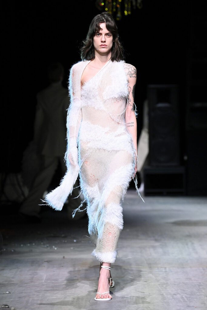 Ένα ελληνικό άγαλμα στο γυμνό μεγαλείο του, μια θεά της Αναγέννησης του Botticelli, μια μοιραία γυναίκα του 1940, ένας ψυχεδελικός πνευματιστής της δεκαετίας του 1960, ένας ακτιβιστής της δεκαετίας του 1970 ή ένας λάτρης της τεχνολογίας του ’90… Είναι πολλές εκδοχές μιας γυναικείας φιγούρας που κινείται κατά μήκος του ασημένιου νήματος του χρόνου και του χώρου που παρουσιάζονται μέσω της συλλογής Φθινόπωρο-Χειμώνας 2021/22. Είναι μια ωδή στη γυναικεία φύση, βασισμένη σε εικονογραφική έρευνα που διερευνά την έννοια του χρόνου και αντικατοπτρίζει τη μυθολογία ενός αγάλματος τοτέμ, ως επαναλαμβανόμενη αναπαράσταση που επεξεργάζεται εκ νέου σε διάφορες ιστορικές εποχές. Αποτελεί επίσης νεύμα για τις δυναμικές, αυθεντικές, ελεύθερες γυναίκες που έχουν εκφραστεί με την ίδια αναστολή με την οποία ξεπέρασαν τους κοινωνικούς κανόνες και τα προκατειλημμένα στερεότυπα.
