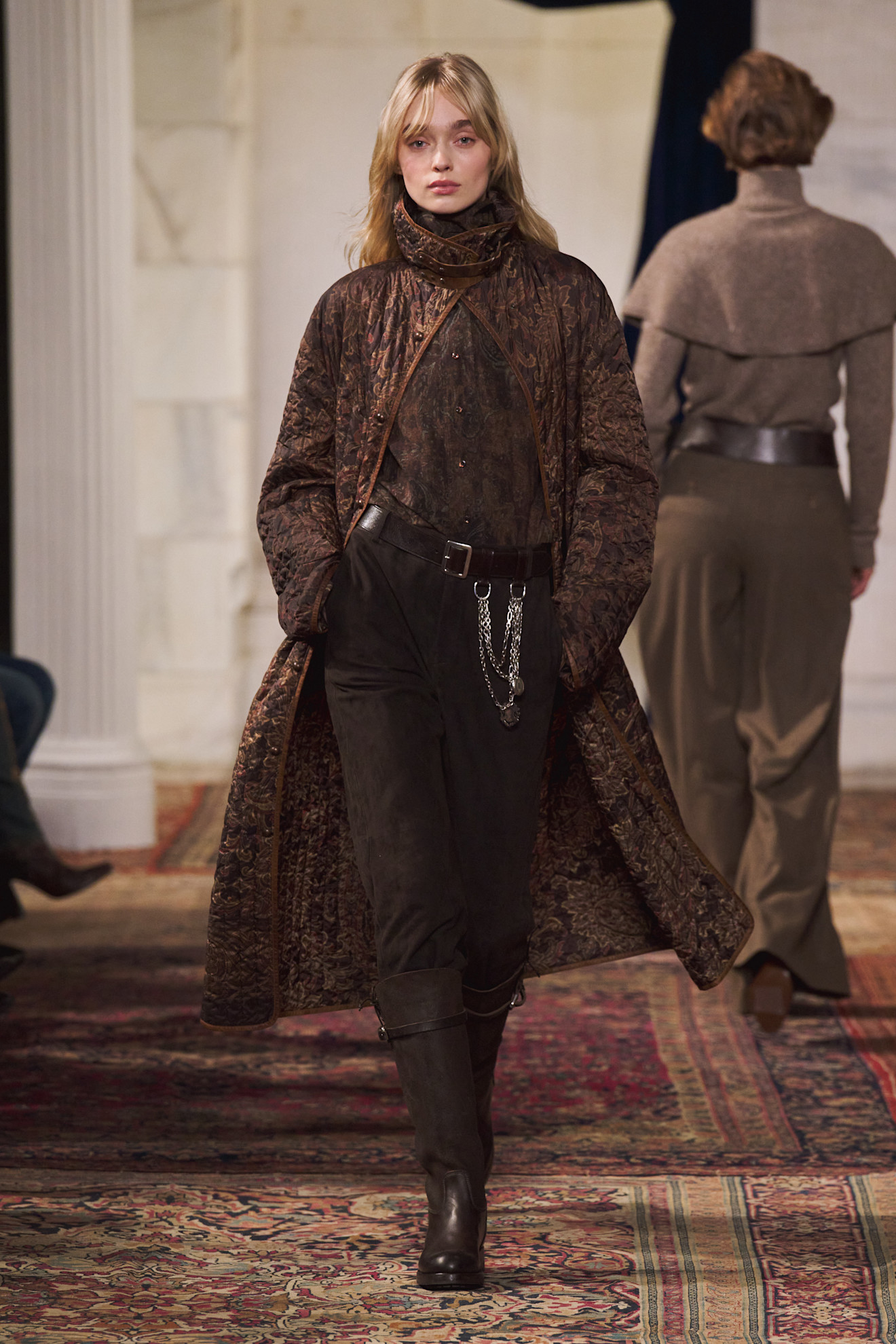 Έχοντας μόλις επιστρέψει στη Νέα Υόρκη από το Μιλάνο όπου έντυσε την ομάδα των ΗΠΑ για τους Χειμερινούς Ολυμπιακούς Αγώνες, ο Ralph Lauren παρουσίασε στη Νέα Υόρκη τη γυναικεία ready-to-wear συλλογή του για το Φθινόπωρο 2026, διευρύνοντας ακόμη περισσότερο το ήδη πλούσιο σύμπαν του οίκου. Η επίδειξη πραγματοποιήθηκε και πάλι στην γκαλερί Jack Shainman στο κέντρο της πόλης, με φόντο επιβλητικές τοιχογραφίες ενός ατμοσφαιρικού, ομιχλώδους δάσους. «Αγαπώ την περιπέτεια της μόδας», ανέφερε ο σχεδιαστής στις σημειώσεις της επίδειξης, περιγράφοντας μια συλλογή εμπνευσμένη από «ένα ανυπότακτο πνεύμα και την αυτοπεποίθηση της γυναίκας που θα τη φορέσει με τον δικό της προσωπικό τρόπο, για να αφηγηθεί τη δική της ιστορία».