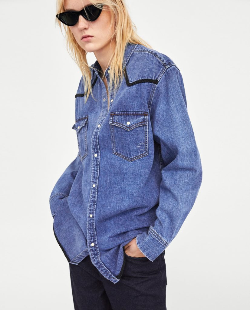 Αν το θηλυκό, floral στυλ δεν είναι πραγματικά το στοιχείο σας, προτείνουμε φέτος να πάρετε ένα πουκάμισο western τύπου ως εναλλακτική λύση. Με αξιοσημείωτη την παρουσία του στον ανοιξιάτικο runway Calvin Klein του 2018, το ξεχωριστό τοπ με τις μπροστινές τσέπες, τον έντονο γιακά και τα κουμπιά αποκλίνει αρκετά από τις συνηθισμένες χαριτωμένες, girly σιλουέτες της άνοιξης. Για εμάς, τίποτα δεν είναι πιο western από ένα denim πουκάμισο και βρήκαμε ένα στα καταστήματα Zara που είναι προσιτό (κοστίζει 29,95 ευρώ) και αρκετά διασκεδαστικό στο στυλ.