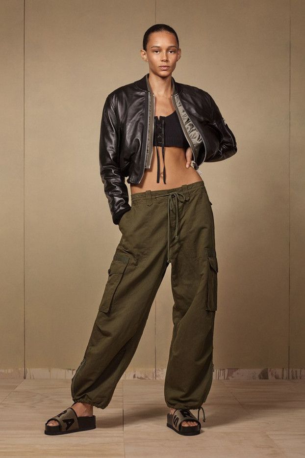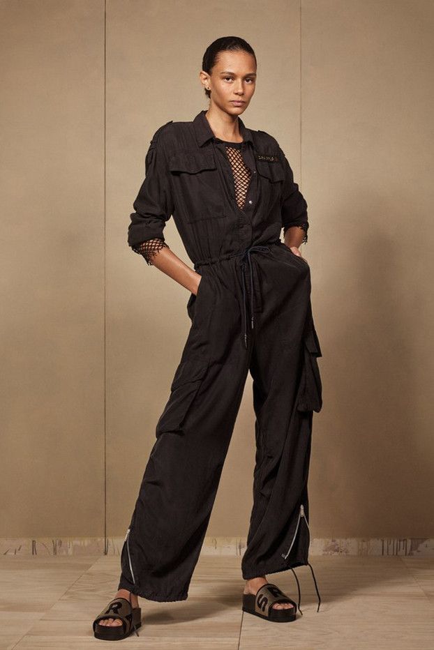 Αυτό μεταφράζεται σε μια συλλογή από υπερμεγέθη, χαλαρά σχέδια σε μια στρατιωτική χρωματική παλέτα από χακί, μαύρο, γκρι και λευκό. Η αισθητική θυμίζει την τάση utility που είδαμε στις πασαρέλες της άνοιξης 2019: τα military κοστούμια στον Givenchy, την neutral παλέτα στον Fendi και τα boilersuits που εντοπίσαμε στους Alexachung και Acne.