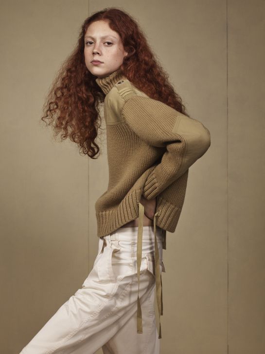 Αυτό μεταφράζεται σε μια συλλογή από υπερμεγέθη, χαλαρά σχέδια σε μια στρατιωτική χρωματική παλέτα από χακί, μαύρο, γκρι και λευκό. Η αισθητική θυμίζει την τάση utility που είδαμε στις πασαρέλες της άνοιξης 2019: τα military κοστούμια στον Givenchy, την neutral παλέτα στον Fendi και τα boilersuits που εντοπίσαμε στους Alexachung και Acne.