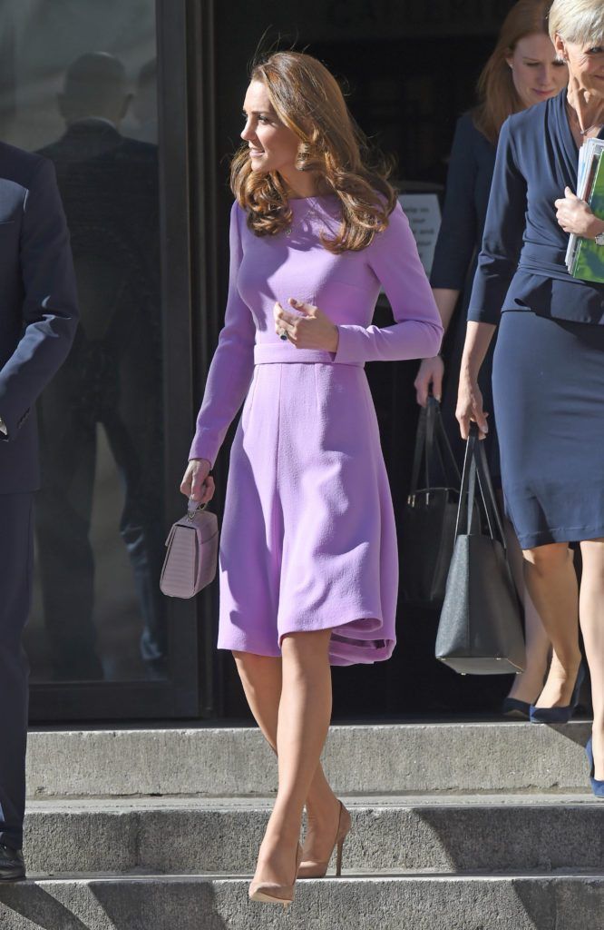 Τον Οκτώβριο, η Δούκισσα έκανε μια απίστευτα κομψή εμφάνιση με ένα από τα αγαπημένα της φορέματα – ένα λιλά από την Emilia Wickstead – και κρατούσε στα χέρια της την παστέλ εκδοχή της ίδιας Aspinal London τσάντας.