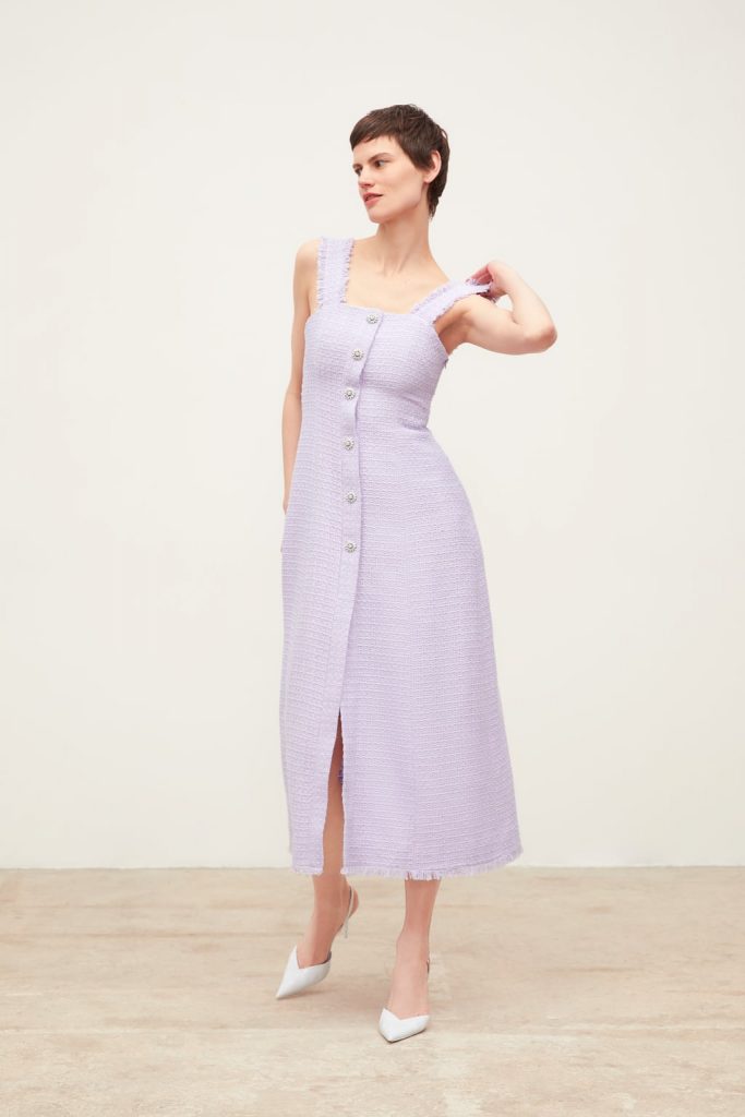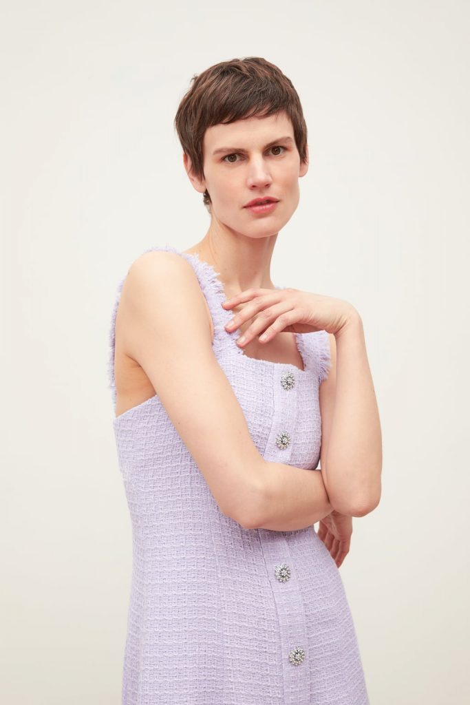 Φτιαγμένο από τουίντ ύφασμα, με τατράγωνο ντεκολτέ και σε μια γλυκιά λιλά απόχρωση είναι δύσκολο να μην το λατρέψεις.