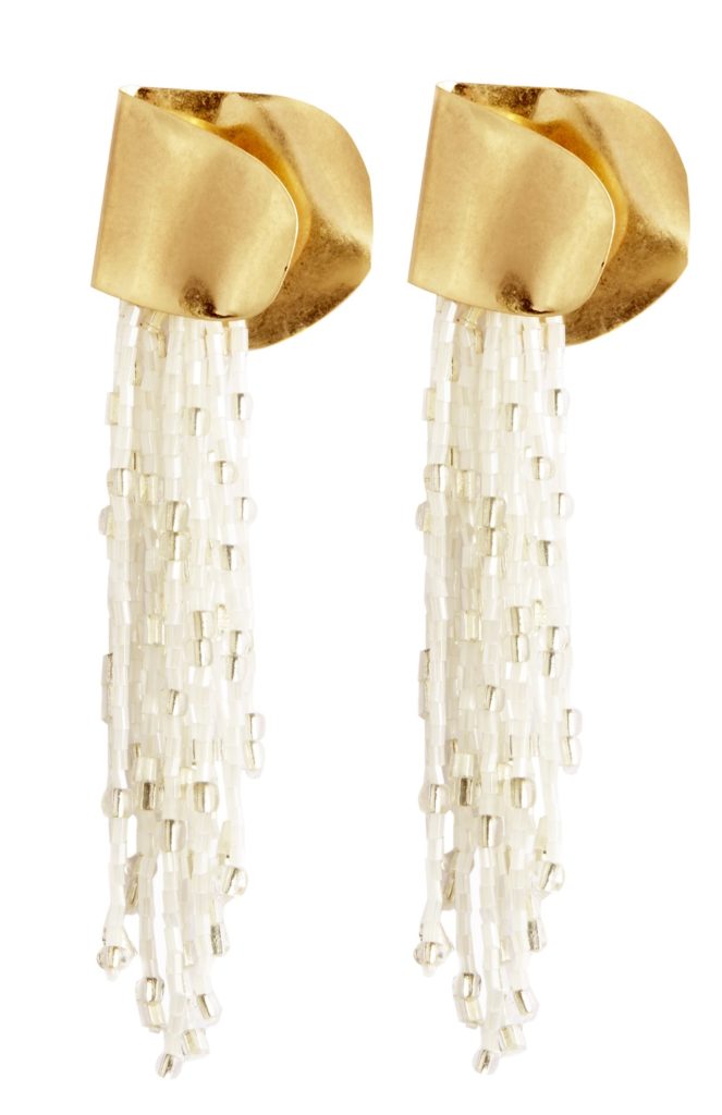 Μεταλλικά σκουλαρίκια με λευκές χάντρες