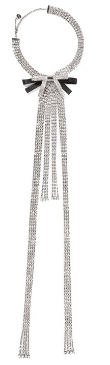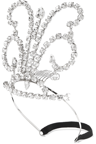 Μεταλλική τσάντα, Paco RabanneΣκουλαρίκια από λευκόχρυσο με διαμάντια, Ilias LalaounisΣκουλαρίκια από λευκόχρυσο με διαμάντια, Ilias LalaounisΠέδιλο με στρας Prada, KalogirouΤσόκερ, Miu MiuΜεταλλικό headpiece, Gucci