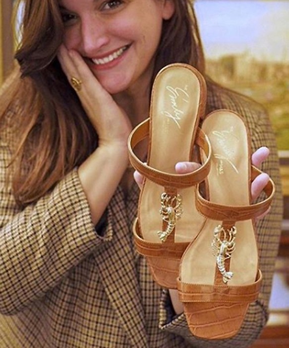 Μιλώντας για την έμπνευση πίσω από το παπούτσι, η Emily είπε: «Είχα μια σαφή ιδέα για το τι ήθελα να δημιουργήσω και ήξερα με σιγουριά ότι ήθελα να ενσωματώσω έναν αστακό κάπου στο σανδάλι. Ο αστακός είναι συνώνυμος με το Maine, όπου έκανα διακοπές σαν παιδί, έτσι είναι ένα μέρος των ριζών μου και είμαι τόσο ευτυχής που η ομάδα σχεδιασμού μπόρεσε να βρει τον τέλειο τρόπο και το γεγονός ότι δείχνει τόσο κομψός σε χρυσό.