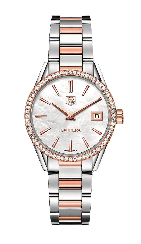 Ρολόι TAG Heuer Carrera Ladies από ατσάλι και ροζ χρυσό 18K, με 64 διαμάντια και κρύσταλλο από ζαφείρι, Tag Heuer Greece