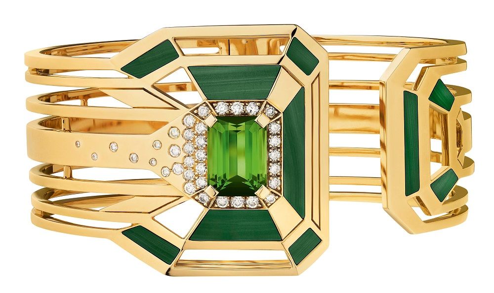 Bραχιόλι από κίτρινο χρυσό 18K με τουρμαλίνες, μαλαχίτη και διαμάντια, Chanel, Linea Piu