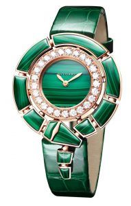 Ρολόι της σειράς Serpenti Incantati από ροζ χρυσό 18K με διαμάντια και δερμάτινο λουρί από αλιγάτορα Bulgari, Ora Kessaris