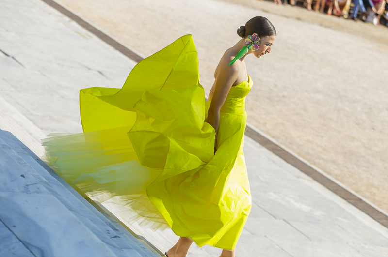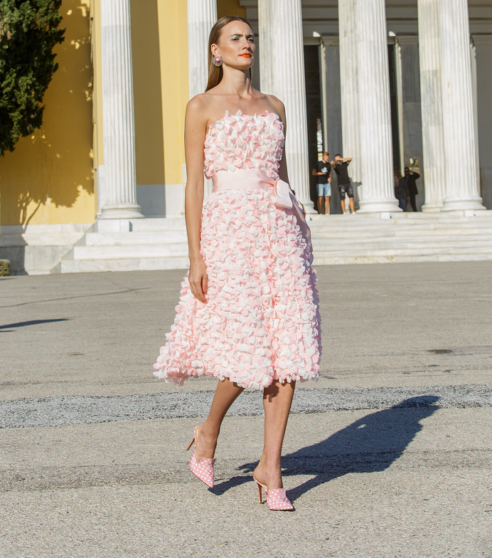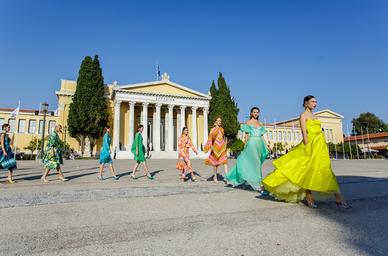 Στο σόου είδαμε φινετσάτες σιλουέτες της συλλογής Women in the Garden να κινούνται κυριολεκτικά μέσα στο θέμα τους στο ειδυλλιακό σκηνικό του κήπου του Ζαππείου, ο Βασίλης Ζούλιας μετέτρεψε το show του σε ένα tableau vivant, όπου λινά σύνολα, deux pieces από tailored τζάκετ, σορτς και παντελόνια, και συναρπαστικά μαντώ εναλλάσσονταν με ανάλαφρα resort και βραδινά, cocktail φορέματα.