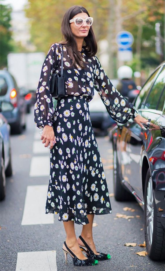 Συνδύασε μια εμπριμέ φούστα με ένα τοπ με το ίδιο ή παρόμοιο μοτίβο. Ολοκλήρωσε το look με ένα ζευγάρι κομψές slingback γόβες.