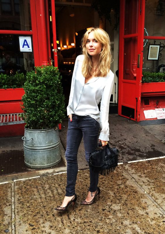 To skinny jean είναι μια εύκολη επιλογή για το βράδυ, αλλά o συνδυασμός του με πλατφόρμες δημιουργεί δυσαναλογία στη σιλουέτα. Φορέστε το σε συνδυασμό με κλασικές στιλέτο γόβες που δίνουν το ύψος με πιο ήσυχο τρόπο.