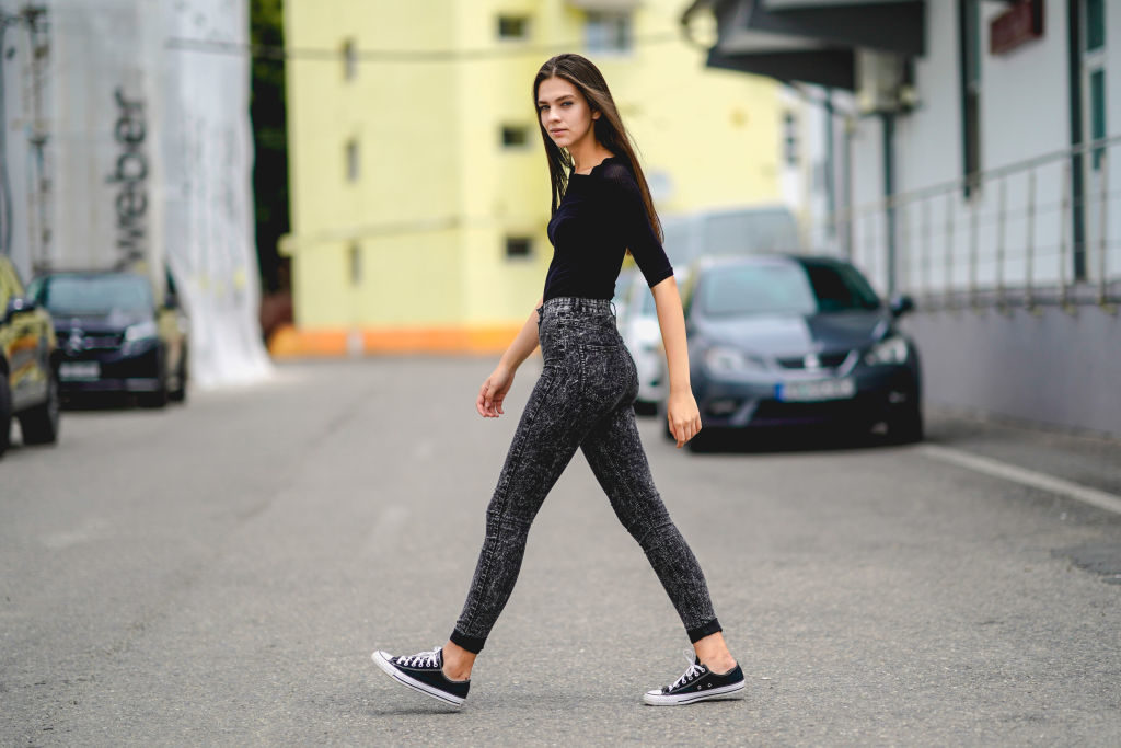 To skinny jean είναι μια εύκολη επιλογή για το βράδυ, αλλά o συνδυασμός του με πλατφόρμες δημιουργεί δυσαναλογία στη σιλουέτα. Φορέστε το σε συνδυασμό με κλασικές στιλέτο γόβες που δίνουν το ύψος με πιο ήσυχο τρόπο.