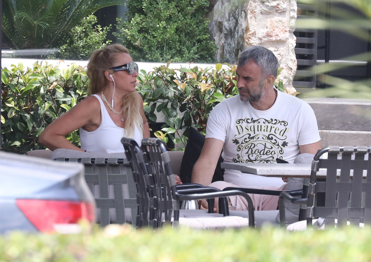 Μας αρέσει η dusty pink απόχρωση, η οποία πάντα είναι classy. Εδώ η γυμνάστρια σέταρε κολάν και αντίστοιχο ελαφρύ jacket δεμένο στους ώμους της, πρόσθεσε ένα λευκό crop top, μαύρο σακίδιο, λευκά slides και βγήκε για μία χαλαρή βόλτα με το σύζυγό της, Τραϊανό Δέλλα.