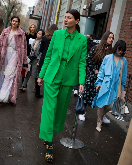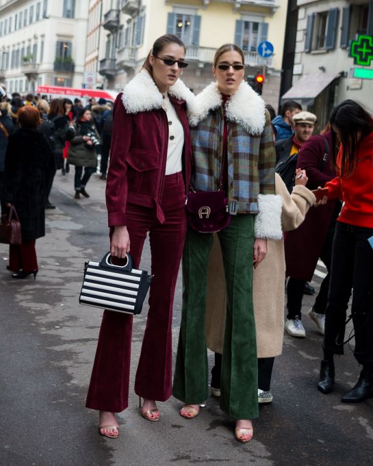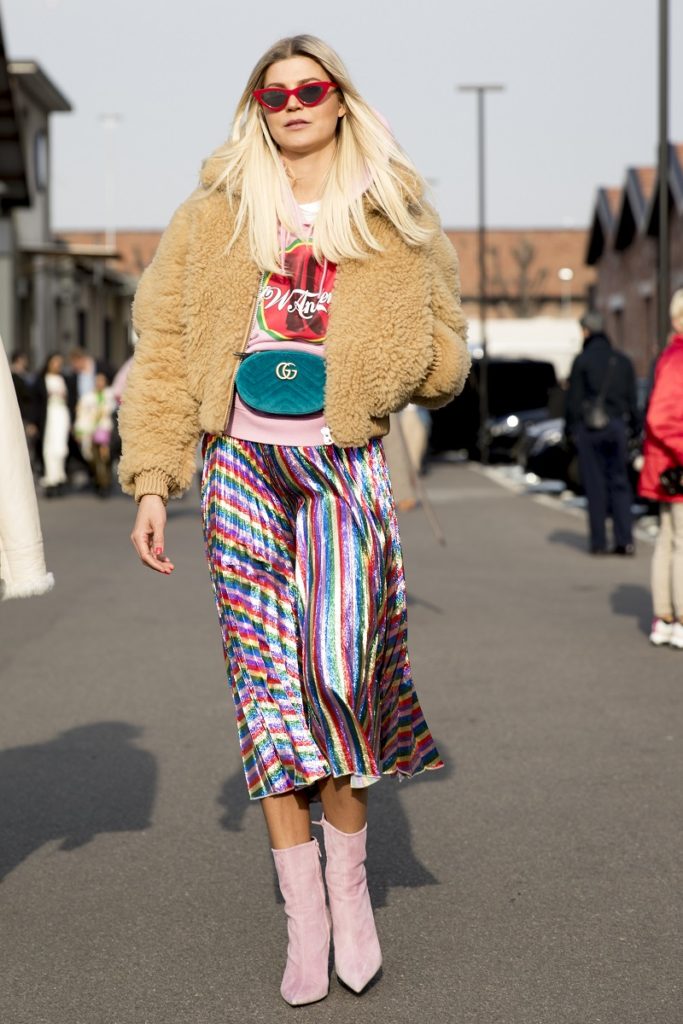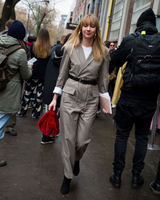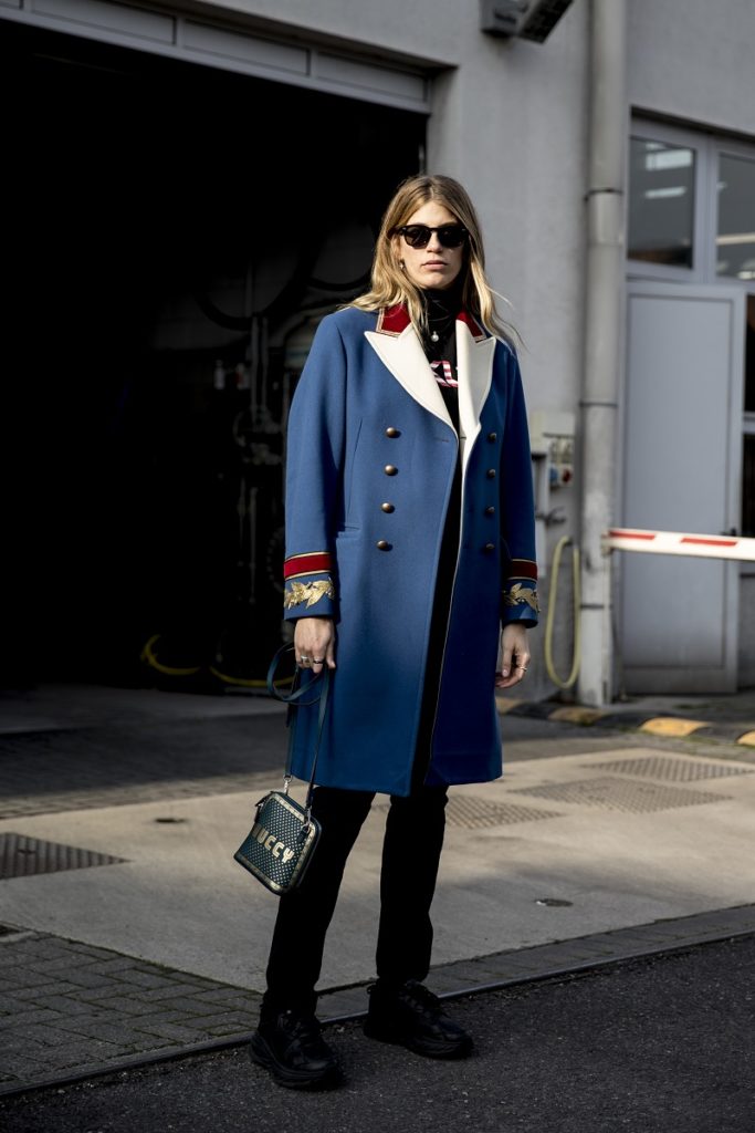 Φυσικά ο Gucci, το κύριο γεγονός στο πρόγραμμα του Μιλάνου, ήταν μια βασική έμπνευση για τα σύνολα της σκηνής του street-style, από τις Marmont τσάντες μέχρι τα μαξιμαλιστικά total looks. Ωστόσο, το κομψό τζετ σετ λάνσαρε πολύ Fendi (το λογότυπο F του εμπορικού σήματος εμφανίστηκε παντού), Prada, Moschino και Moncler.