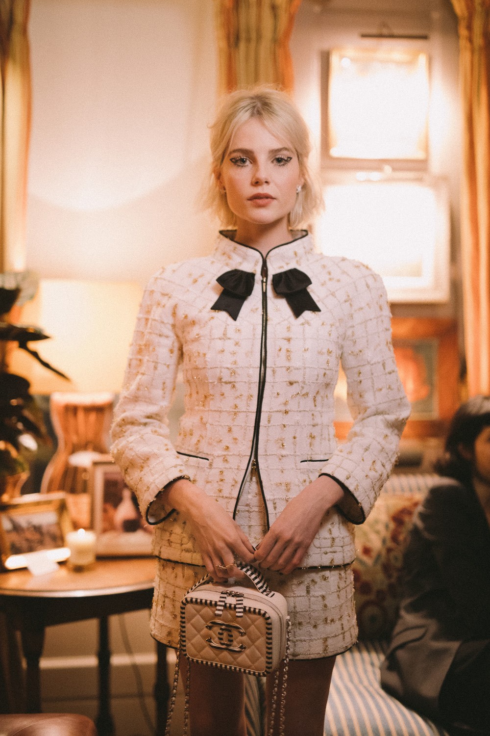 Τέσσερις τσέπες, διαγώνιες πλέξεις tweed υφάσματος σε αρμονικούς ή αντίθετους χρωματικούς τόνους, κουμπιά με σφραγισμένο το σύμβολο του οίκου.Για το φινίρισμα, ραμμένη στο περίγραμμα, μια λεπτή αλυσίδα για να εξασφαλίσει ότι το σακάκι πέφτει τέλεια.Μια επανάσταση! Αυτή είναι η ανατομία του εμβληματικού σακακιού, το οποίο η Γκαμπριέλ Σανέλ εξέλιξε με τη μορφή που το ξέρουμε σήμερα το 1954 σε μια απόπειρα να αντιδράσει στην ασφυκτικά μεσάτη σιλουέτα που επικράτησε την δεκαετία του 50 την οποία θεωρούσε πισωγύρισμα σε παλαιότερες συνήθειες και αγκυλώσεις (ας μην ξεχνάμε ότι η σχεδιάστρια είχε συμβάλλει στην μεγαλύτερη αλλαγή της γυναικείας γκαρνταρόμπας όλων των εποχών: στην κατάργηση του κορσέ).