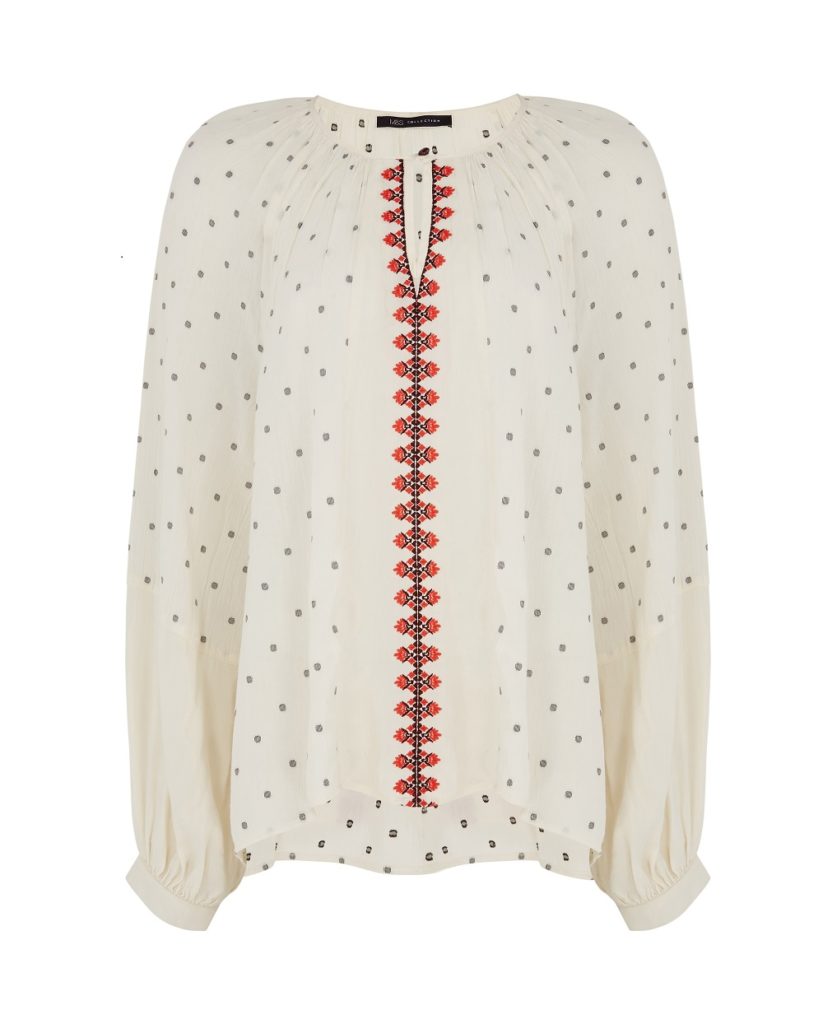 Tα φαρδιά μανίκια και τα διακριτικά κεντήματα το κάνουν ιδανικό για καλοκαιρινά vibes.