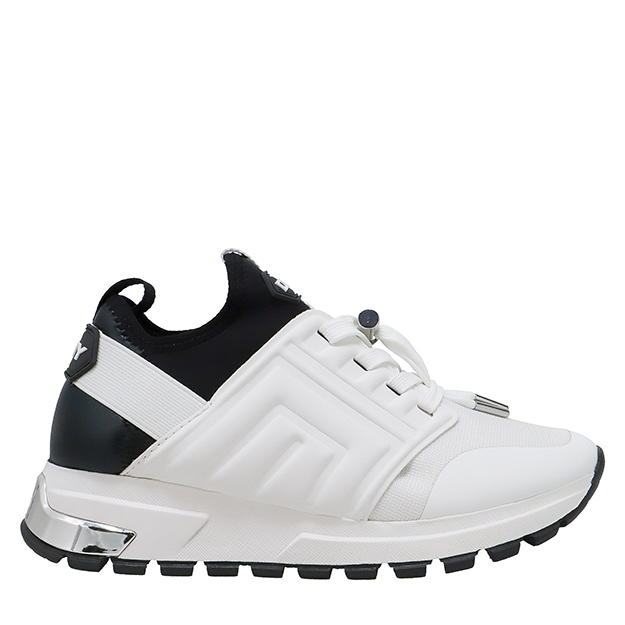 Αναβάθμισε το αθλητικό σου look και όχι μόνο, με αυτά τα λευκά sneakers με μεταλλικές λεπτομέρειες και διακριτικά γεωμετρικά σχέδια στο πλάϊ. Το λογότυπο του οίκου αναγράφεται στη γλώσσα του παπουτσιού και η σόλα με το πίσω μέρος του δημιουργούν αντίθεση με μαύρο χρώμα.
