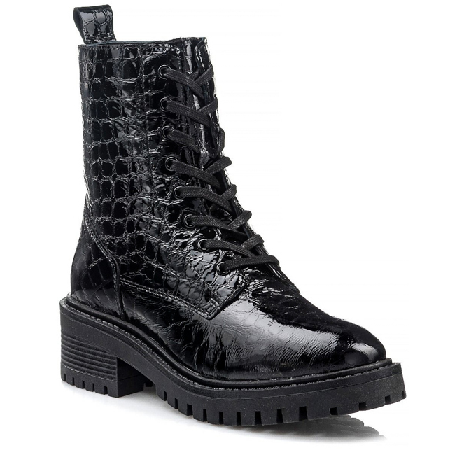 Γυναικείο μαύρο λουστρινένιο αρβυλάκι της ελληνικής εταιρείας Nak. Το πάνω μέρος του έχει υφή κροκό, και η λαστιχένια σόλα του έχει ύψος 4 εκατοστά. Φοριέται άνετα από το πρωί μέχρι το βράδυ.