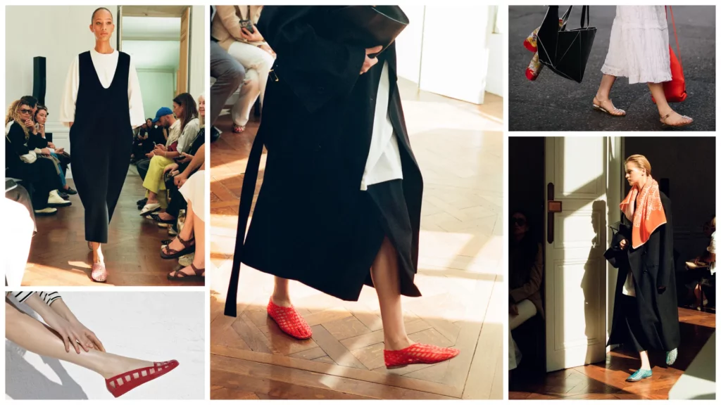 Αυτή τη φορά (όπως και πολλές άλλες), όλα ξεκίνησαν με το brand, The Row. Στην επίδειξη της άνοιξης 2024, τα μοντέλα περπάτησαν στην πασαρέλα με διχτυωτά jelly σανδάλια, φέρνοντας στο νου την ευκολία και τη χαλαρότητα των θερινών περιπλανήσεων. Ενώ το μοντέλο Mara της μάρκας εξαντλήθηκε σχεδόν το ίδιο λεπτό που έγινε διαθέσιμο προς πώληση, η ζημιά έγινε: Τα jelly shoes είναι το μόνο παπούτσι που θέλουμε να φορέσουμε αυτό το καλοκαίρι.