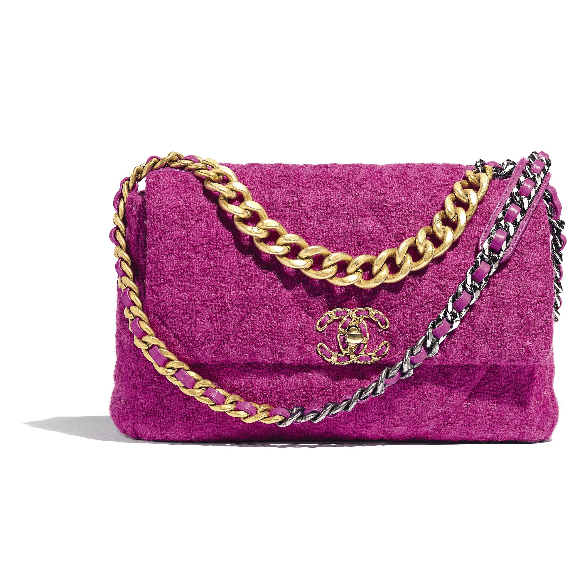 Σαν εκτόνωση στους χαμηλούς τόνους των γραμμών και του ύφους, οι οίκοι μόδας βούτηξαν τα αξεσουάρ τους σε φαντασμαγορικά χρώματα για να ανεβάσουν την ένταση στα προσγειωμένα σύνολα γραφείου. Τι θα λέγατε γι’ αυτήν του οίκου Chanel σε φούξια χρώμα;