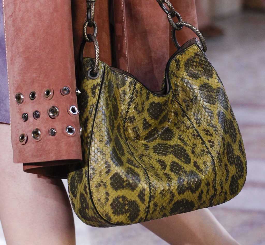 Αυτή τη σεζόν ντύνει τις ψηλές DrMartens μπότες (Jeremy Scott) και τις νεο-ρετρό μπότες που σχεδίασε η Natacha Ramsay-Lévi στην πρώτη solo συλλογή της (Chloé) .Όσον αφορά στις τσάντες, είναι συνήθως μικρές και χειροποίητες, πάντα δομημένες, μερικές φορές δυνατές και θηλυκές (Bottega Venetta), και μερικές φορές μια σκληρή υπόθεση (Andrew GN). Όσο για τον Jonathan Anderson, κατάφερε για άλλη μια φορά να γίνει αντικείμενο συζήτησης με αυτή τη μάλλον απίθανη πρόταση: τα αθλητικά παπούτσια που αναμιγνύονται με ένα παραδοσιακό σχήμα ινδικού khusa (Loewe). Ελξη ή απέχθεια, τα φίδια είναι, και θα παραμείνουν πάντα, διφορούμενα ζώα.