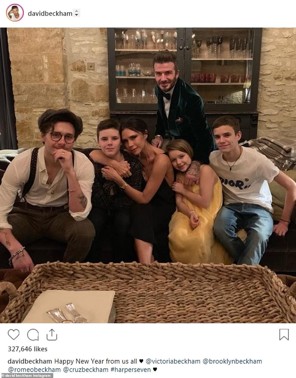 Σκηνοθέτης της βραδιάς ο 43χρονος σύζυγός της Ντέιβιντ Μπέκαμ όπου όλο το βράδυ της Πρωτοχρονιάς τραβούσε οικογενειακά ενσταντανέ με τα τέσσερα παιδιά του. τον 19χρονο Brooklyn, τον 16χρονο Romeo, τον 13χρομνο Cruz και την μικρή της οικογένειας τη μικρούλα 7χρονη  Harper.