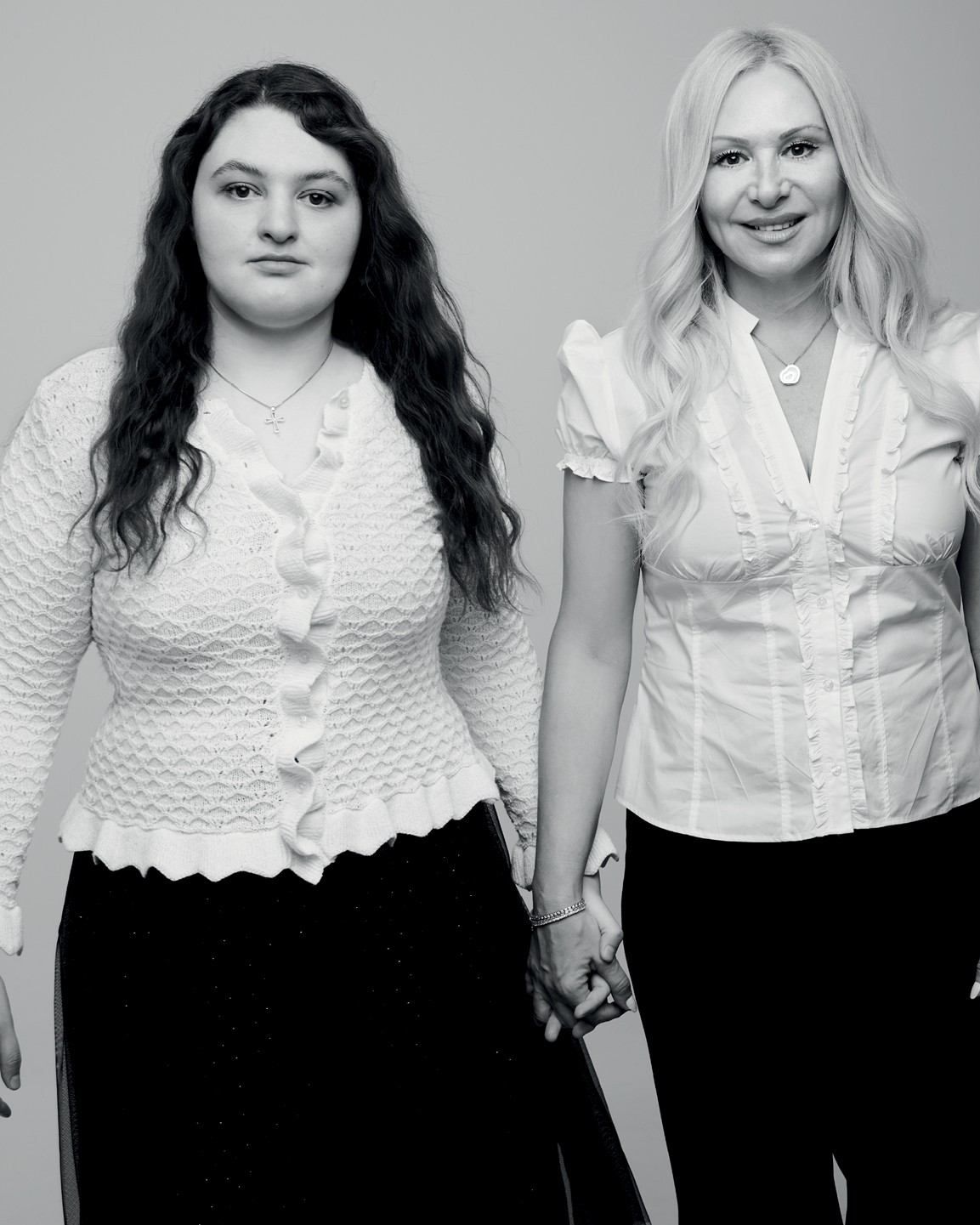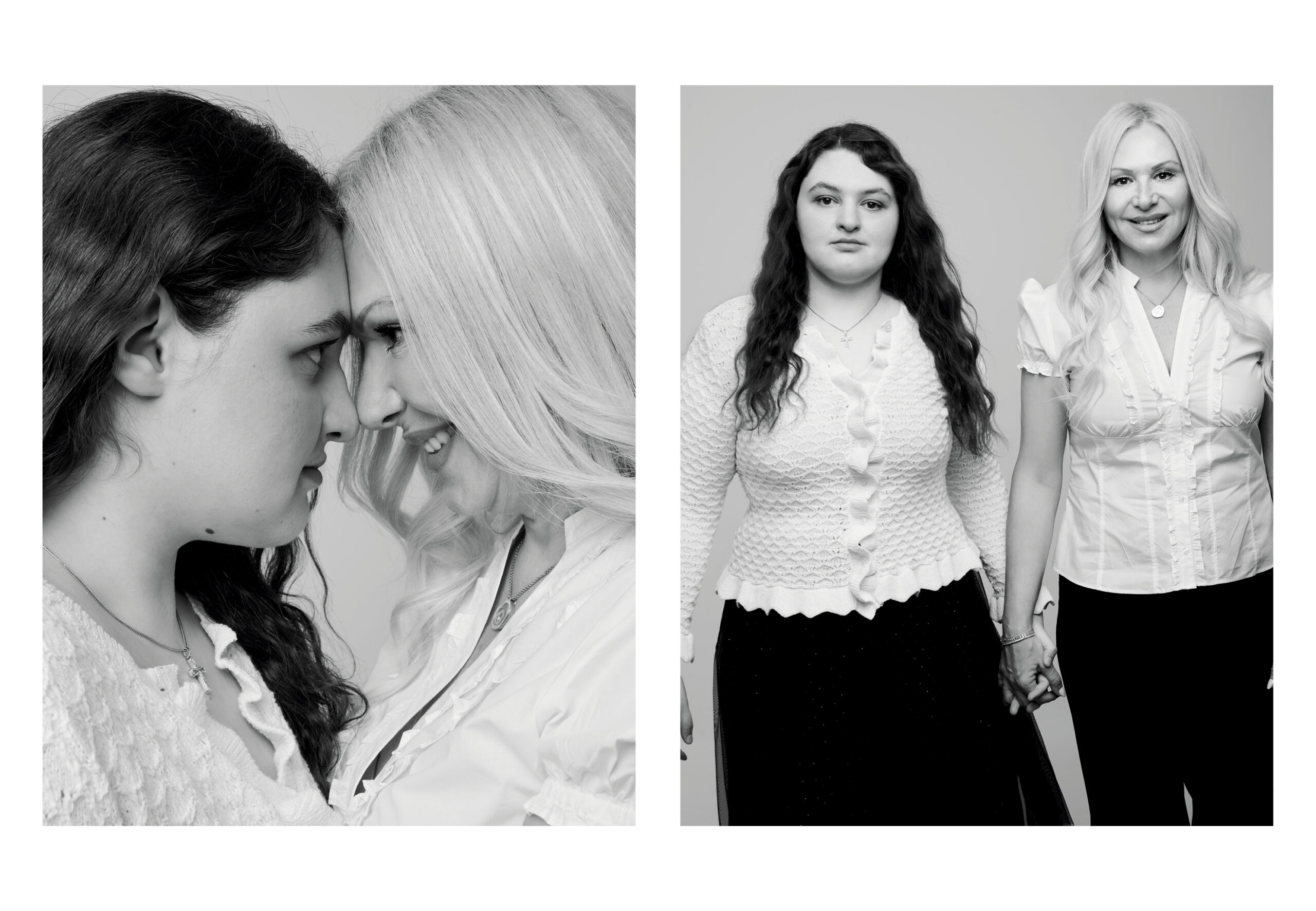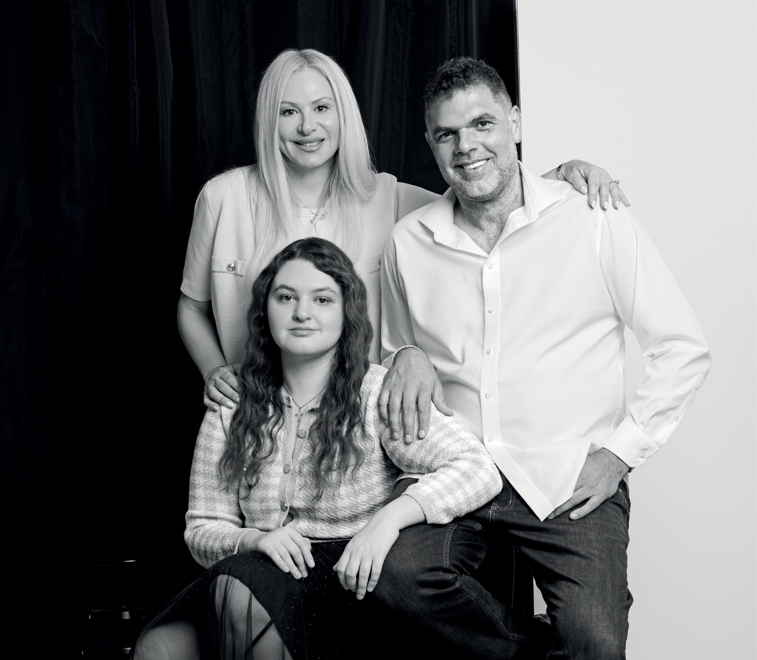 Φτάνοντας στο στούντιο όπου γίνεται η φωτογράφηση της οικογένειας Παπανικολάου, τους πετυχαίνω τη στιγμή που η σχεδόν 20χρονη Άρια έχει ολοκληρώσει τις λήψεις της και χαζεύει στο κινητό της μέχρι να τελειώσουν οι γονείς της με τις δικές τους.