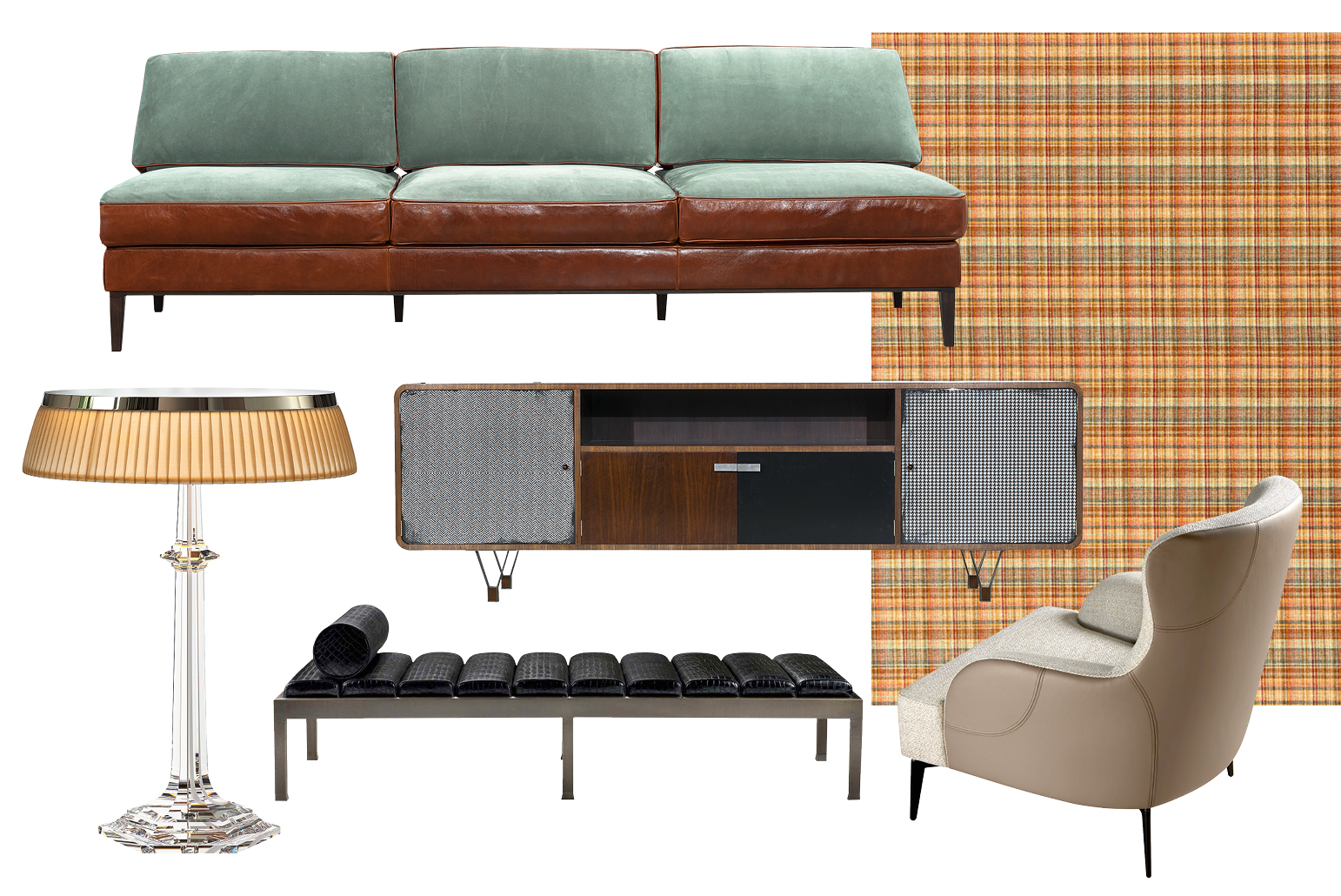 Επιτραπέζιο φωτιστικό Bon Jour Versailles σε σχέδιο Philippe Starck για τον οίκο Baccarat, Deros The Shop 4. Mπουφές Memo σε σχέδιο Draga & Aurel για την Baxter, Interni 5. Γραφείο Erasmo σε σχέδιο Massimo Scolari για την Giorgetti, Γιάννης Δελούδης 6. Πολυθρόνα Zelda επενδυμένη με ύφασμα και δέρμα, Homad