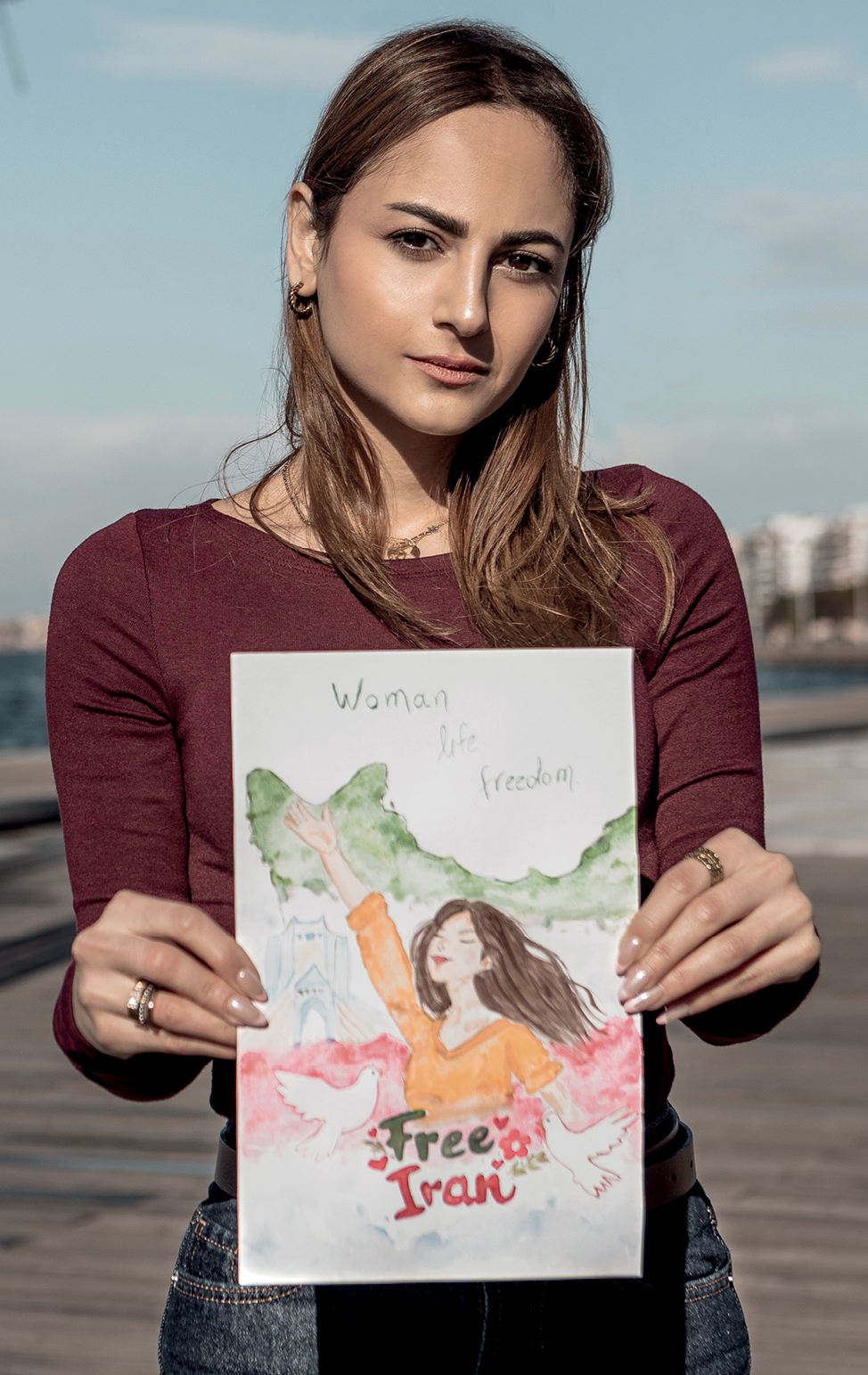Και όταν τελικά πάτησα Ελλάδα, ένιωσα να ξαναγυρνάει η ανάσα μου. Είπα μέσα μου: «Αχ Ελλάδα, Ελλάδα». Γιατί εδώ βρήκα μια καινούρια ζωή. Εδώ είχα ευκαιρίες, υποστήριξη. Εδώ μπορώ να είμαι άνθρωπος. Κι όταν με ρωτούν τι θα έλεγα στις γυναίκες που ζουν σήμερα στο Ιράν, λέω μόνο αυτό: Είμαστε όλοι εγκλωβισμένοι -γυναίκες και άντρες-, αλλά οι γυναίκες το κουβαλάνε πιο βαριά. Εκεί ξυπνάς με φόβο. Ζεις με φόβο. Θέλω να αλλάξει. Αλλά πιστεύω ότι δεν θα αλλάξει αν ο κόσμος δεν βοηθήσει – αν δεν πιέσουν, αν δεν σταθούν δίπλα μας. Γιατί μόνες μας απέναντι σε αυτό, είναι σαν να κρατάμε την αναπνοή μας κάτω από το νερό.