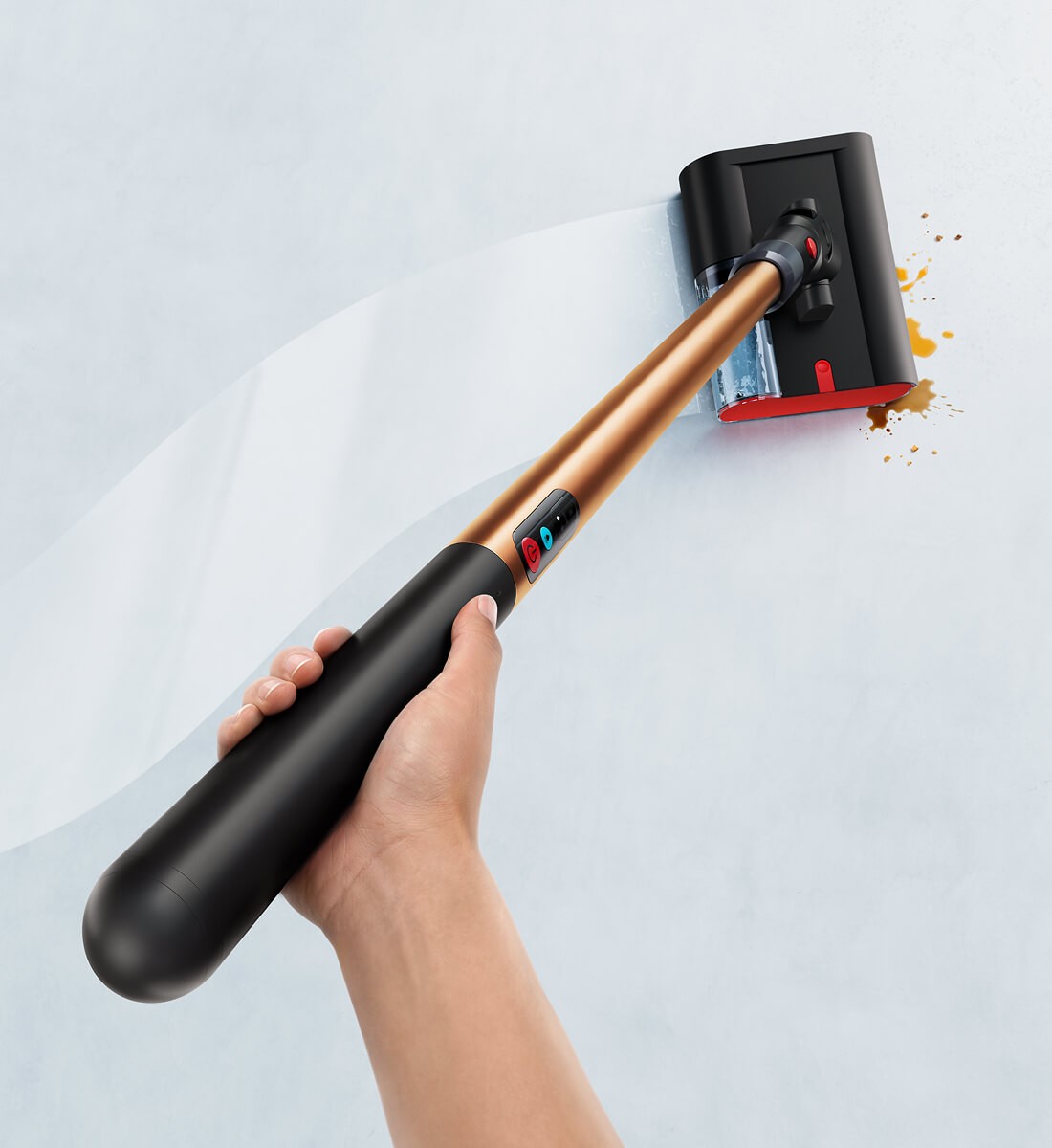 Ανάλογα, επίσης, με το πόσο βρώμικο είναι το πάτωμα, μπορούμε να διαλέξουμε ανάμεσα σε δύο λειτουργίες έντασης διαβροχής – έτσι κι αλλιώς, η Dyson έχει φροντίσει η ποσότητα του νερού που φτάνει στο πάτωμα να είναι τέτοια ώστε να στεγνώνει γρήγορα, πράγμα πολύ σημαντικό, καθώς, όπως όλοι γνωρίζουμε καλά, ο χρόνος μας είναι πολύτιμος. Στην περίπτωση που ο χώρος που θέλουμε να καθαρίσουμε διαθέτει πολλά εμπόδια, ο εύκαμπτος λαιμός και η οριζόντια κλίση ως και 170 μοίρες μάς δίνει τη δυνατότητα να φτάνουμε ως και κάτω από τα χαμηλά έπιπλα, διατηρώντας πάντα ομαλή και ελεγχόμενη την κίνηση της συσκευής stick.