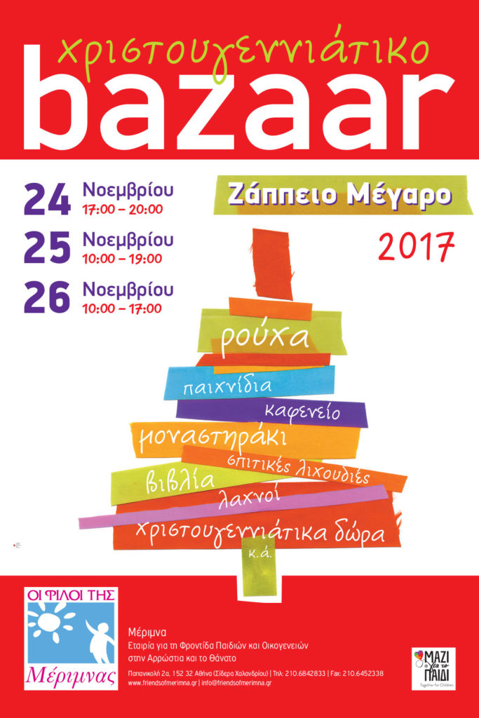 Κάθε χρόνο η φιλανθρωπική οργάνωση Οι Φίλοι της Μέριμνας, που προσφέρει στήριξη σε παιδιά με σωματικές, ψυχοκοινωνικές και πνευματικές ανάγκες οργανώνει το καλύτερο Ελληνικό bazaar με designer ρούχα σε καταπληκτικές τιμές. Valentino φόρεμα από 30eur έως Chanel σακάκι 200 eur.