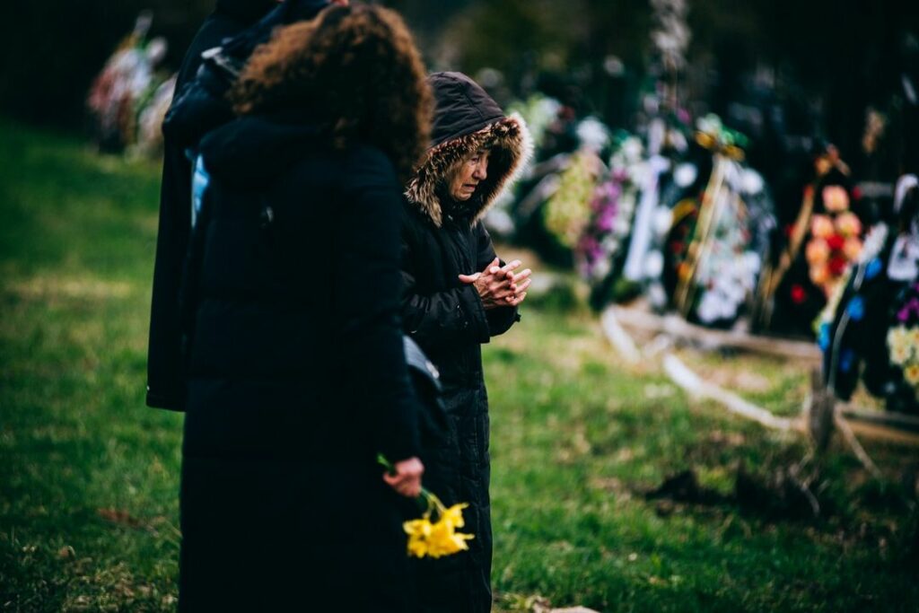 »Στις 18 Απριλίου η Valentyna Nechyporenko θάβει το γιο της, τον Ruslan Nechyporenko, κάτοικοι της Bucha, που σκοτώθηκε κατά τη ρωσική κατοχή».