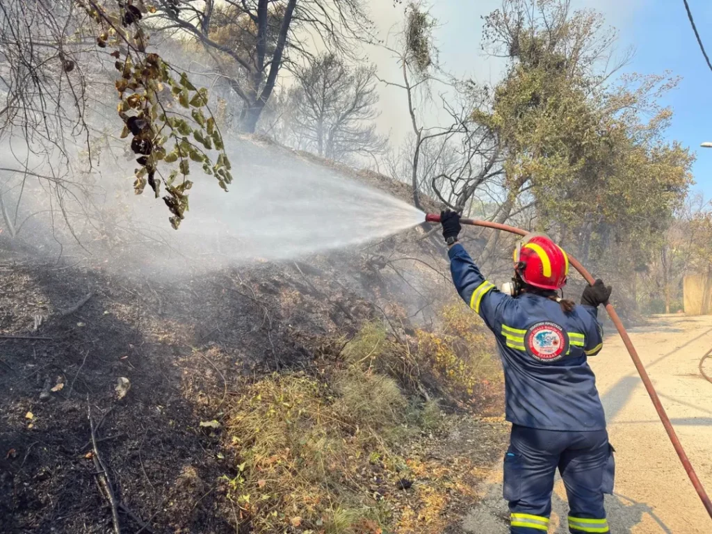 »Καθώς οι φλόγες καταπίνουν το πράσινο και ο καπνός σκουραίνει τον ουρανό, τέσσερα οχήματα της ΕΠΟΜΕΑ (1, 5, 7 & 9) με τα πληρώματά τους είναι εκεί – στην πρώτη γραμμή της φωτιάς.