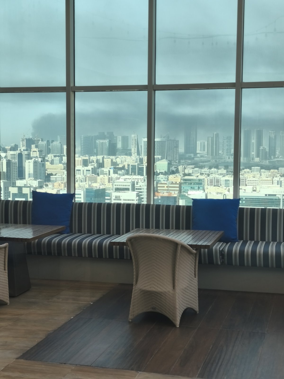 »Δεν βγήκαμε από το ξενοδοχείο. Για δύο λόγους. Ο πρώτος είναι ότι δεν τα πάω καλά με τη ζέστη και ο δεύτερος ότι δεν τα πάω καλά με τα θεοκρατικά καθεστώτα καλά ως γυναίκα, δεν αισθανόμουν άνετα να κυκλοφορώ στον δρόμο. Αλλά κάποια στιγμή, τη Δευτέρα νομίζω ήταν, απελπίστηκα πια. Λέω, εντάξει, πάμε μία βόλτα, με τους Γάλλους, μέχρι την παραλία, να δούμε τι είναι αυτό το Αμπού Ντάμπι. Τη στιγμή και που βγαίνουμε από το ξενοδοχείο κοιτάζουμε αριστερά και βλέπουμε ένα τεράστιο μαύρο σύννεφο καπνού να βγαίνει πίσω από τους ουρανοξύστες και σιγά σιγά να τους καλύπτει. Είχε χτυπηθεί η ναυτική βάση. Ξαναγυρίσαμε στο ξενοδοχείο και δεν ξαναβγήκαμε.