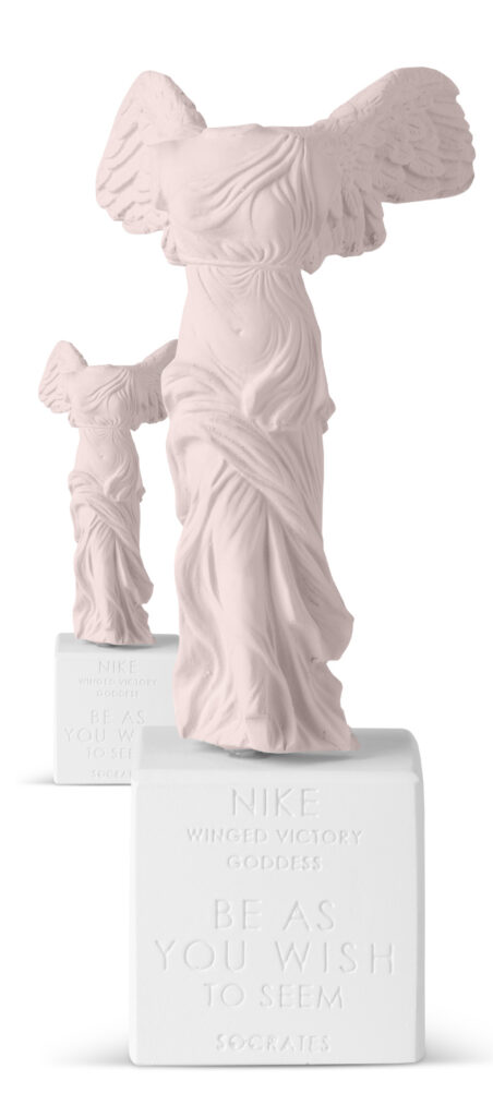 Τα αγαλματίδια της Νίκης της Σαμοθράκης είναι από την collection Eternity Today της Sophia Enjoy Thinking ενώ η εκδήλωση πραγματοποιείται με την ευγενική χορηγία της εταιρείας ΠΑΠΑΠΟΣΤΟΛΟΥ Ν. Α.Ε.