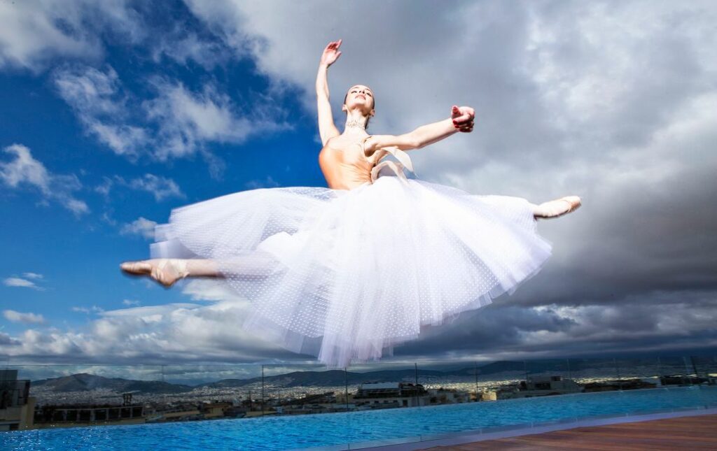 Πιρουέτες στη μαρμάρινη σκάλα που μαρτυρά το παρελθόν και γίνεται γέφυρα για το σύγχρονο παρόν και μέλλον, περίτεχνες φιγούρες μπροστά από τα αυθεντικά έργα Τέχνης που κοσμούν κάθε γωνιά του ξενοδοχείου, ζεστά βλέμματα και χαμόγελα που φανερώνουν τη θερμή υποδοχή συνθέτουν τη γιορτινή εικόνα του ξενοδοχείου και διηγούνται την ιστορία της Τέχνης που το αγκαλιάζει.