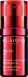 Νέα επαναστατική φόρμουλα για τα μάτια με 94% φυσικά συστατικά. Χάρη στα δύο αποτελεσματικά ενεργά συστατικά-εκχύλισμα οργανικού harungana και κερί cassia- που περιέχει, η Total Eye Lift της Clarins χαρίζει ανόρθωση και άμεση ξεκούραση στην περιοχή των ματιών.
