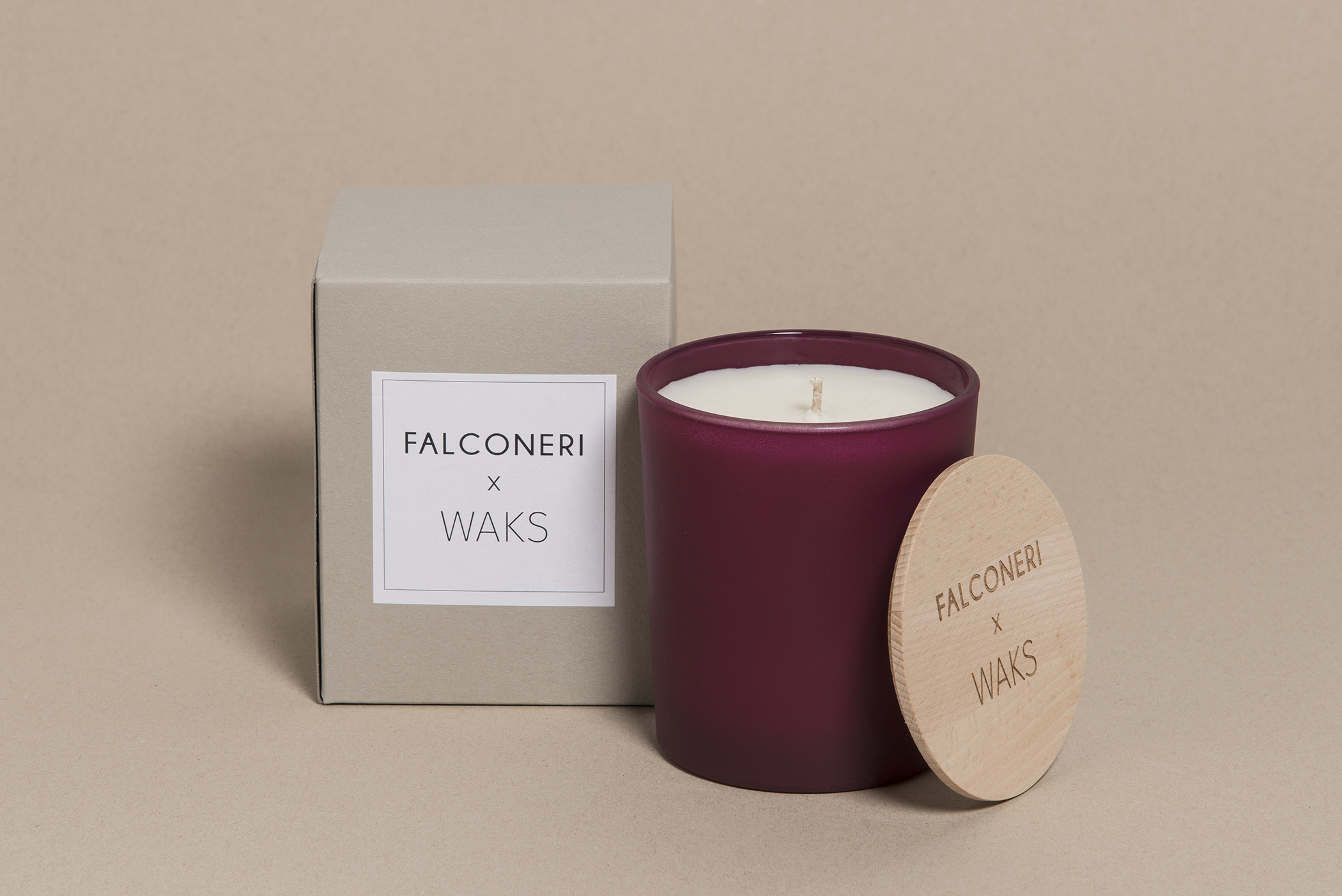 Ένα συλλεκτικό κερί, που αντιπροσωπεύει την αισθητική και την ταυτότητα της Falconeri και που είναι εμπνευσμένο από το χρώμα της σεζόν, το Marsala.
